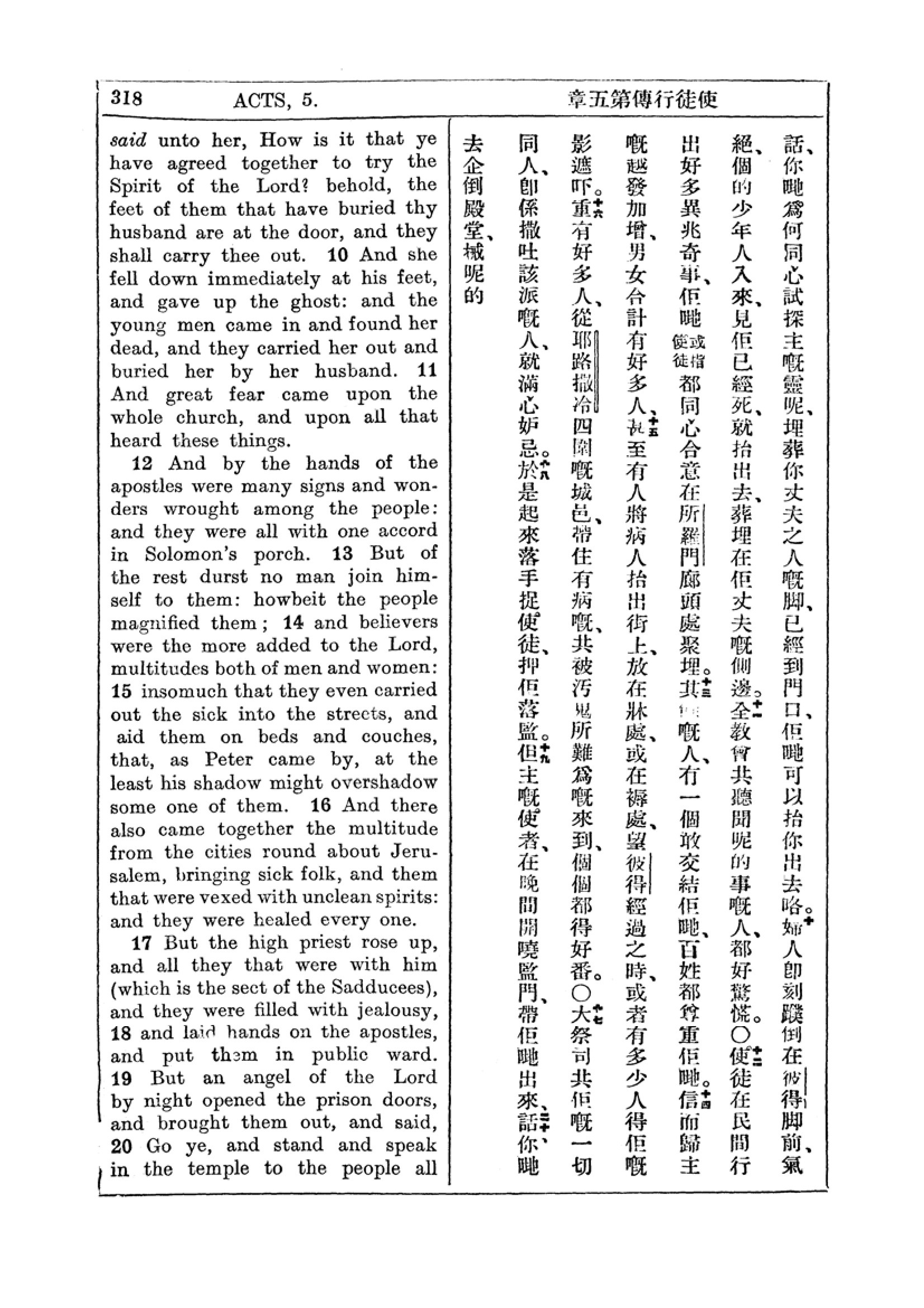 1927年新約全書(中英對照) 使徒行傳 5 章 9 節到 5 章 20 節