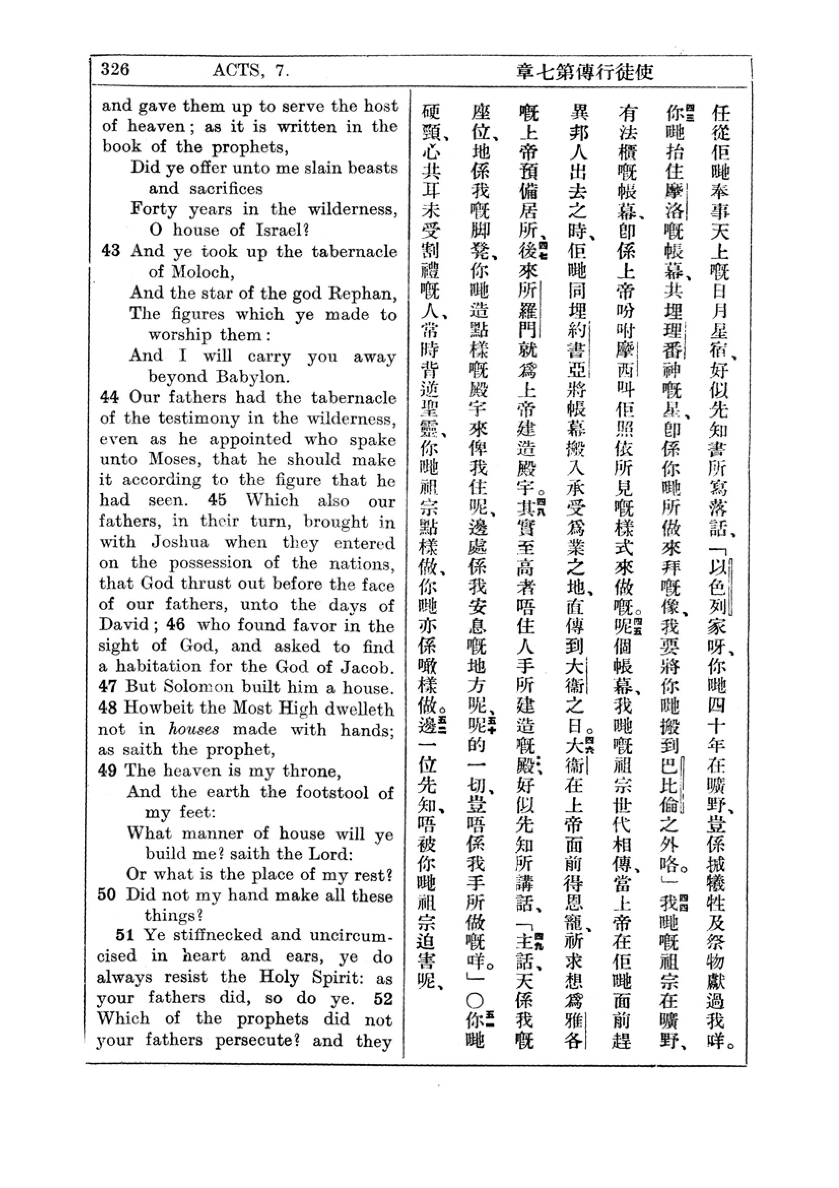 1927年新約全書(中英對照) 使徒行傳 7 章 42 節到 7 章 51 節