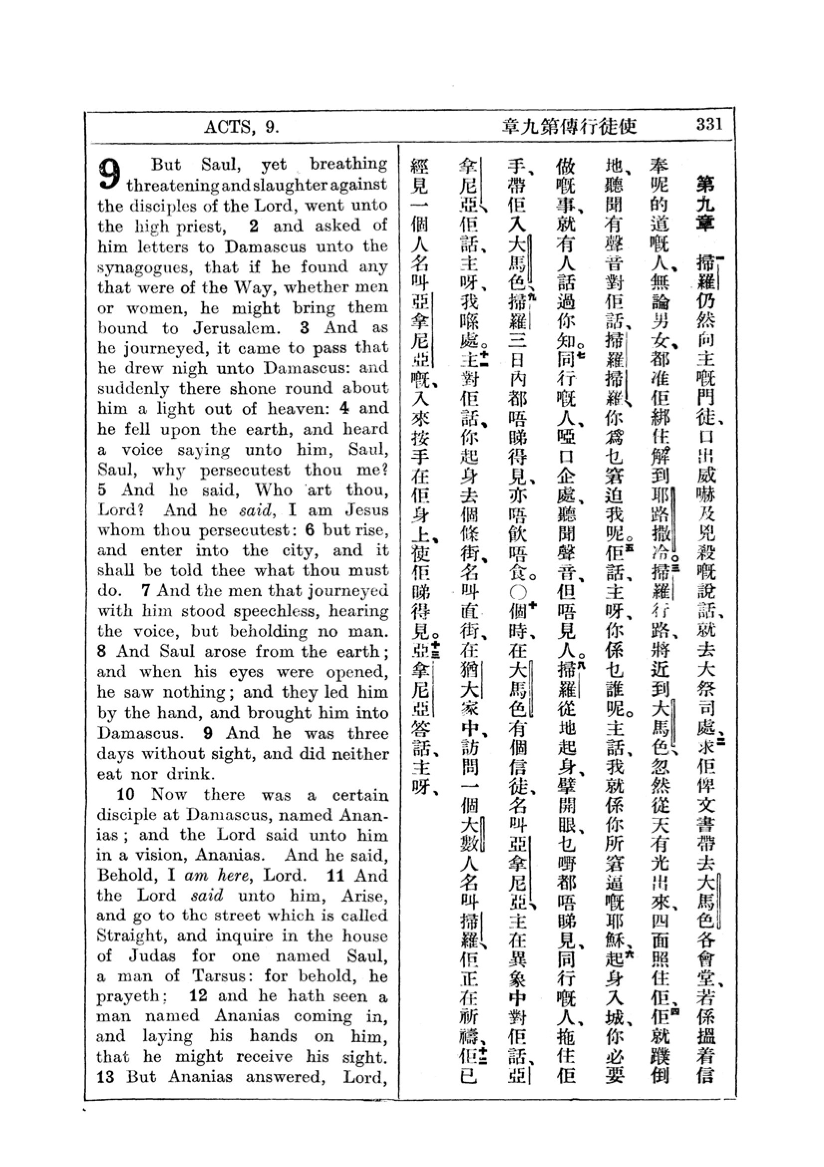 1927年新約全書(中英對照) 使徒行傳 9 章 1 節到 9 章 13 節