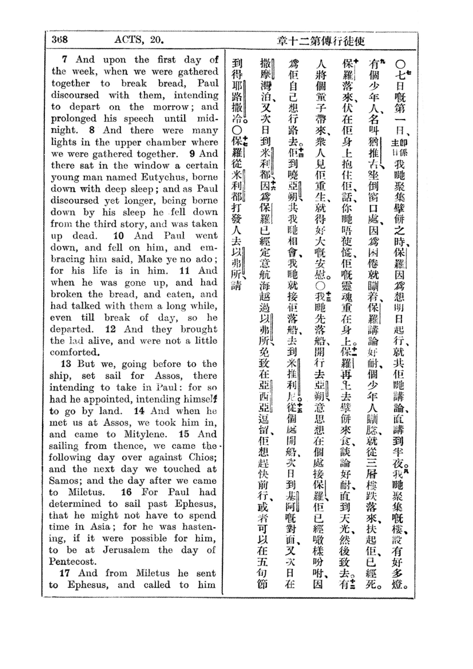 1927年新約全書(中英對照) 使徒行傳 20 章 7 節到 20 章 17 節