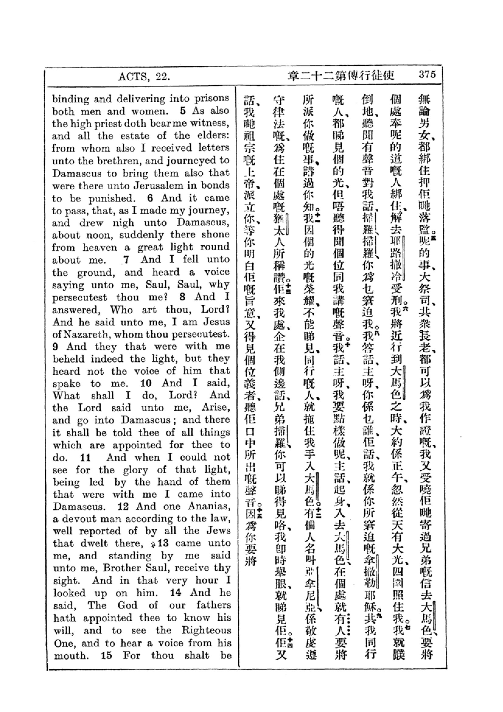 1927年新約全書(中英對照) 使徒行傳 22 章 5 節到 22 章 14 節