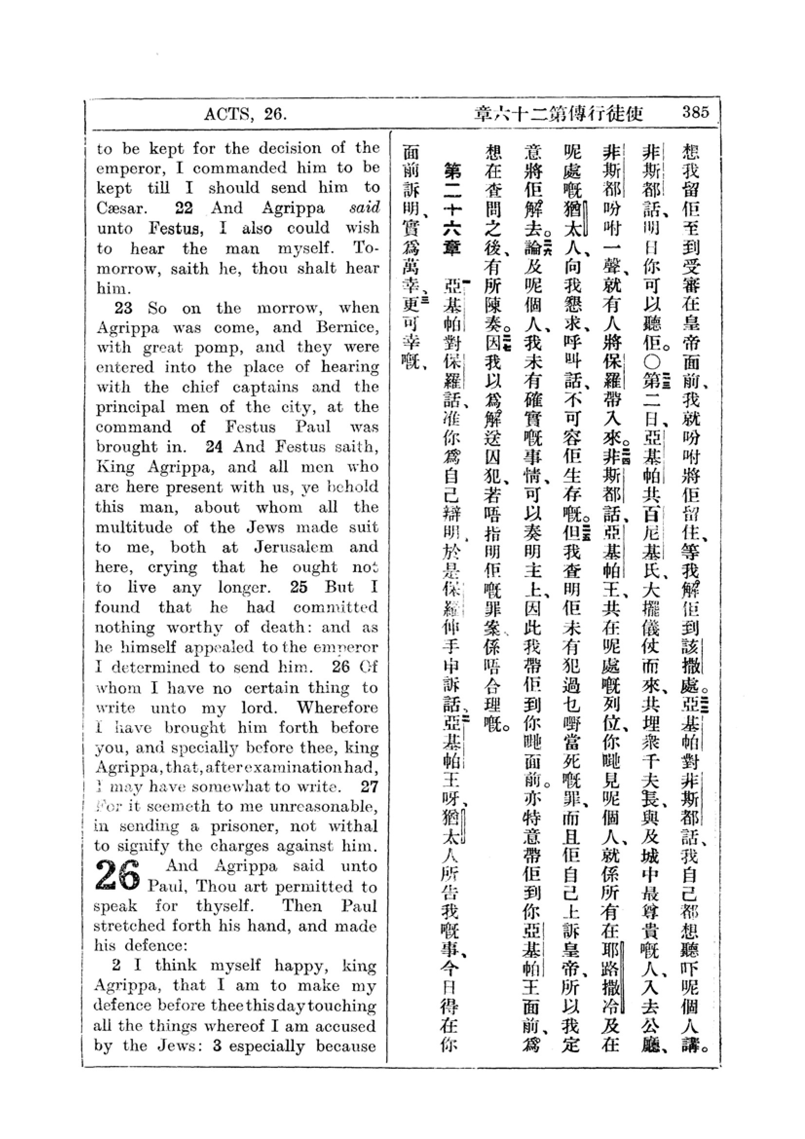 1927年新約全書(中英對照) 使徒行傳 25 章 21 節到 26 章 3 節