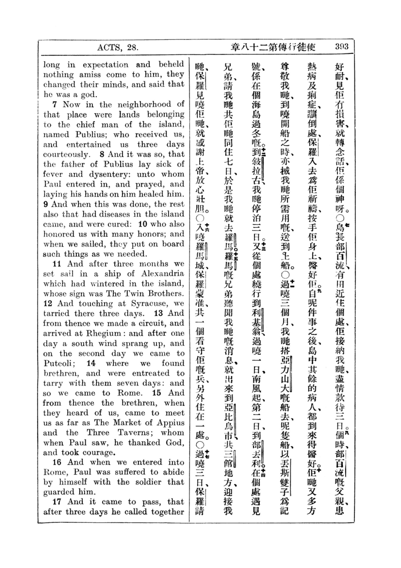 1927年新約全書(中英對照) 使徒行傳 28 章 7 節到 28 章 16 節