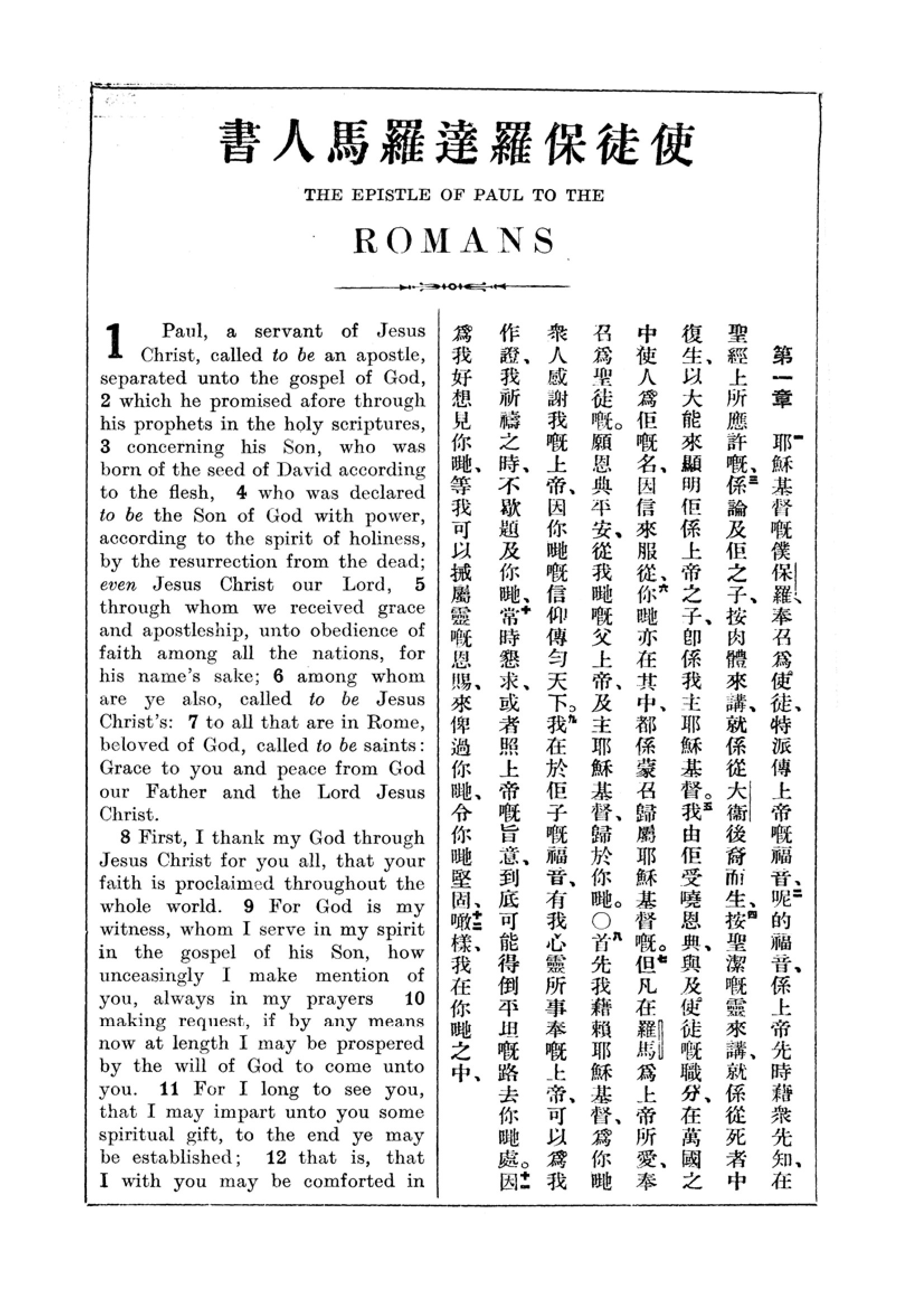 1927年新約全書(中英對照) 羅馬書 1 章 1 節到 1 章 12 節