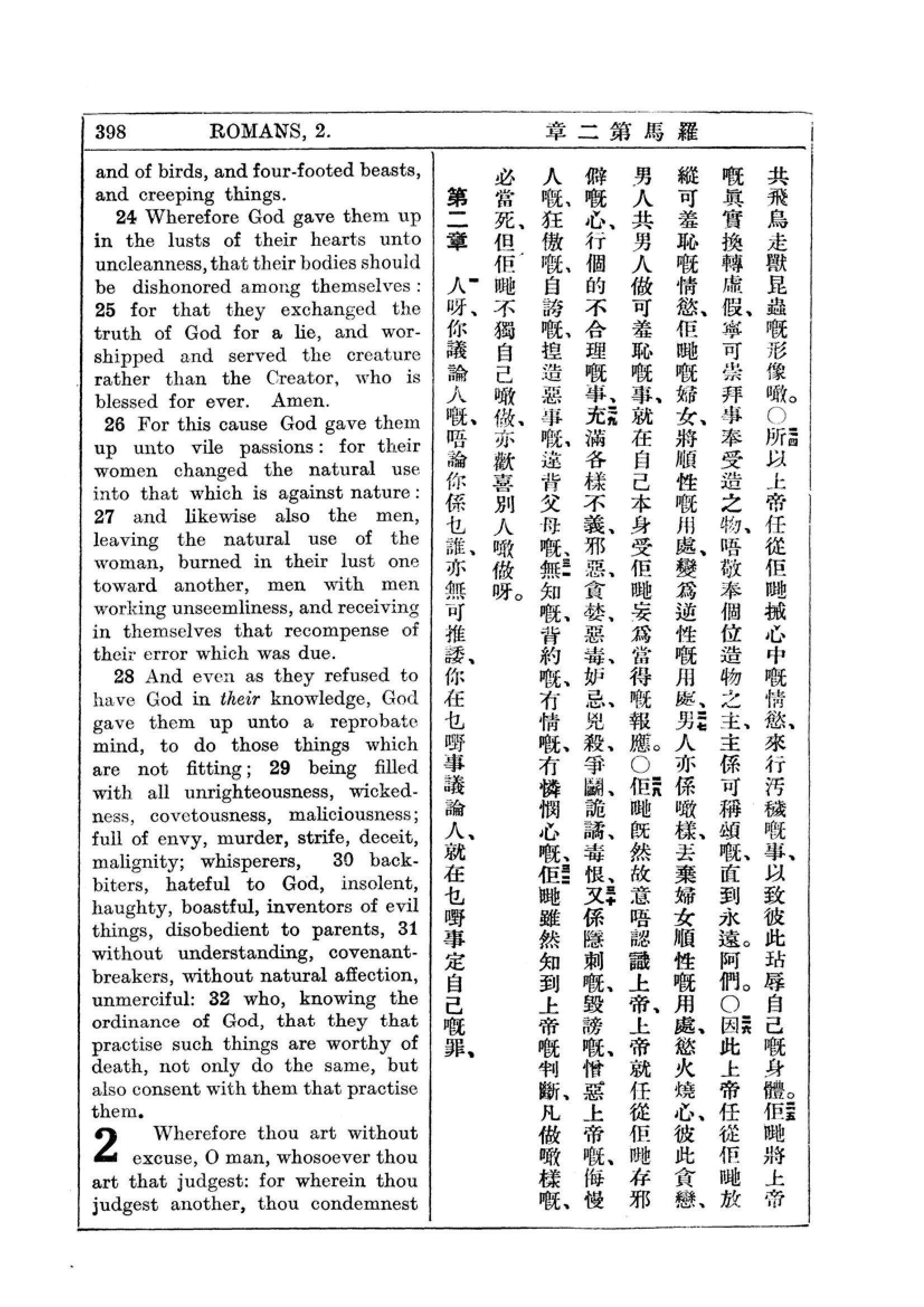 1927年新約全書(中英對照) 羅馬書 1 章 24 節到 2 章 1 節