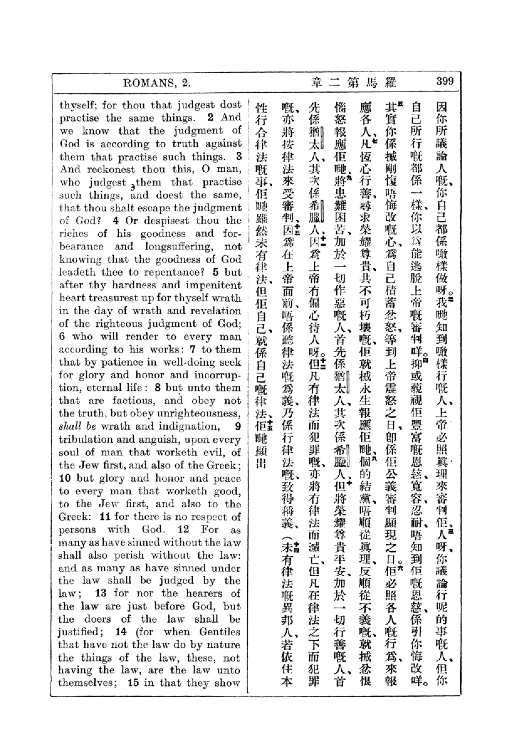 1927年新約全書(中英對照) 羅馬書 2 章 2 節到 2 章 14 節