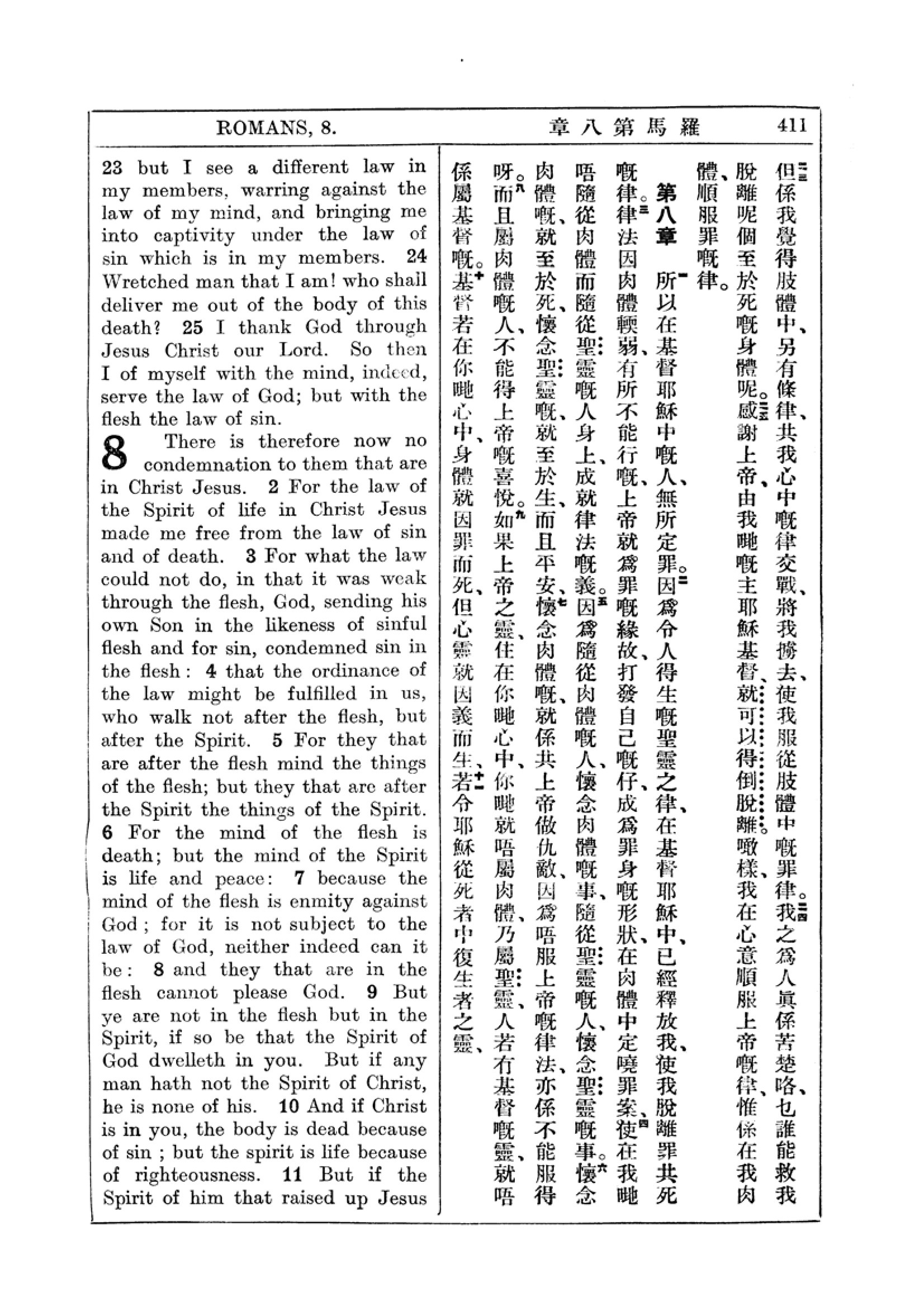 1927年新約全書(中英對照) 羅馬書 7 章 23 節到 8 章 11 節