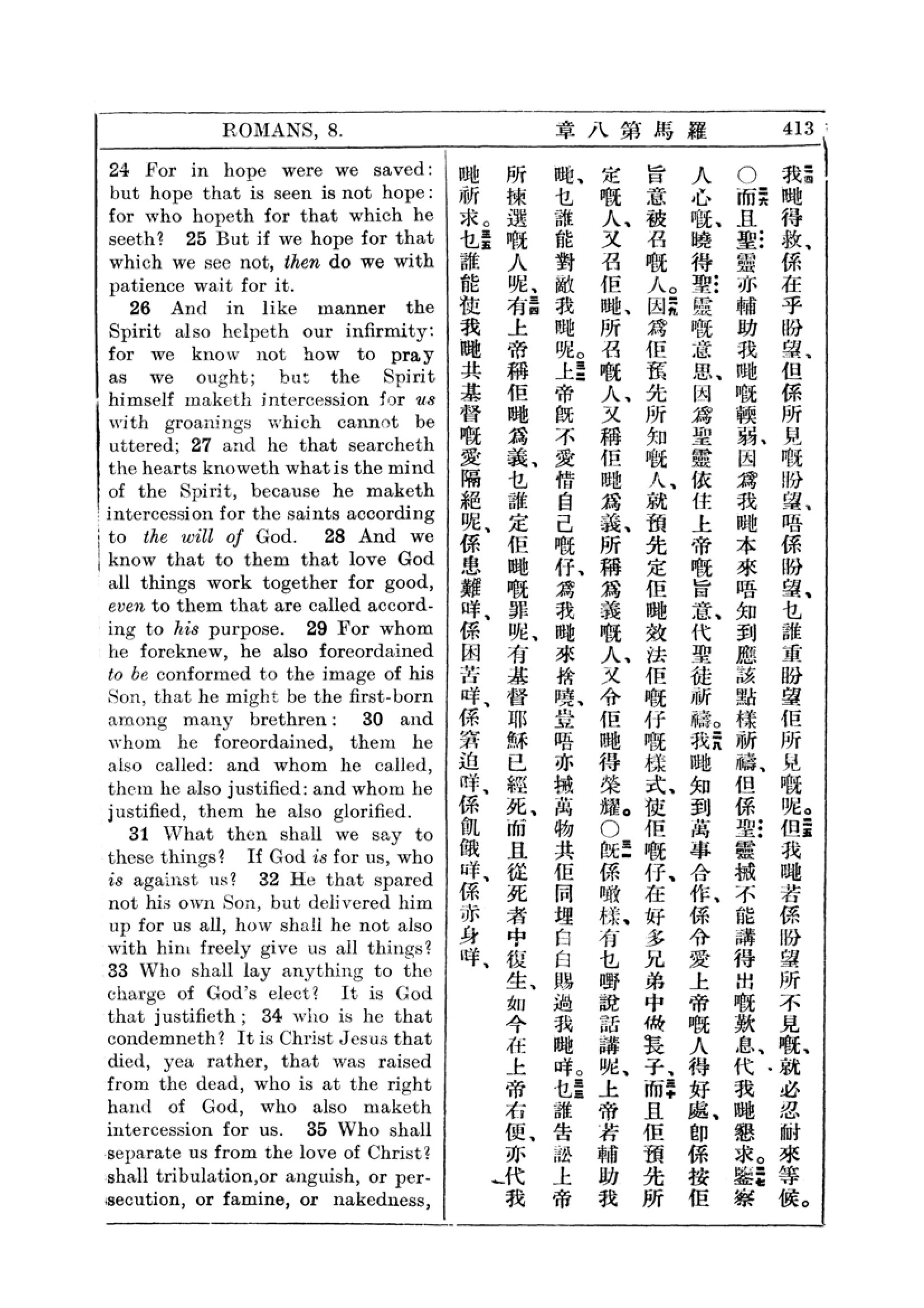 1927年新約全書(中英對照) 羅馬書 8 章 24 節到 8 章 35 節