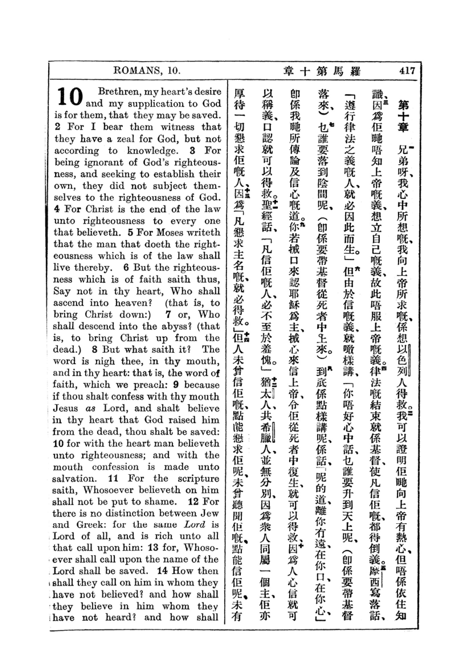 1927年新約全書(中英對照) 羅馬書 10 章 1 節到 10 章 14 節