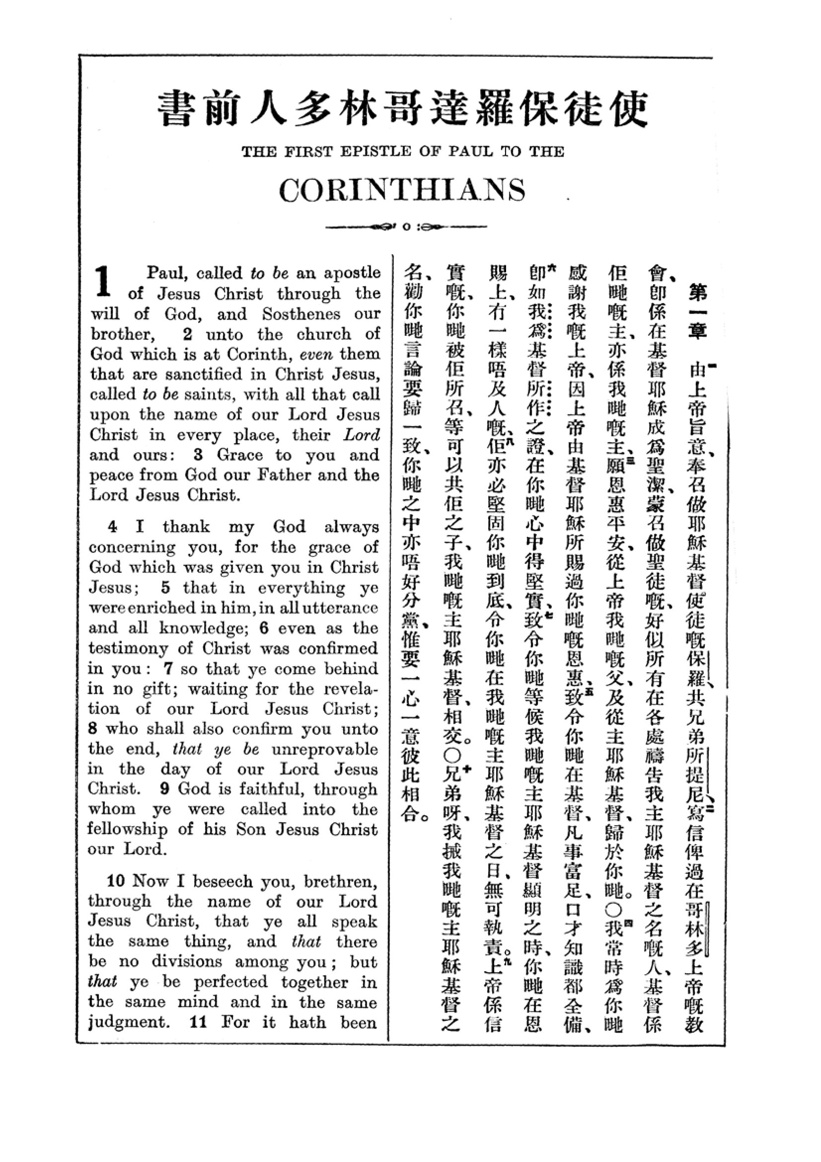 1927年新約全書(中英對照) 哥林多前書 1 章 1 節到 1 章 10 節