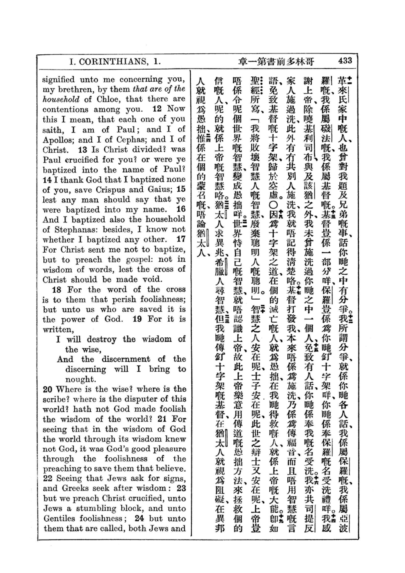 1927年新約全書(中英對照) 哥林多前書 1 章 11 節到 1 章 24 節