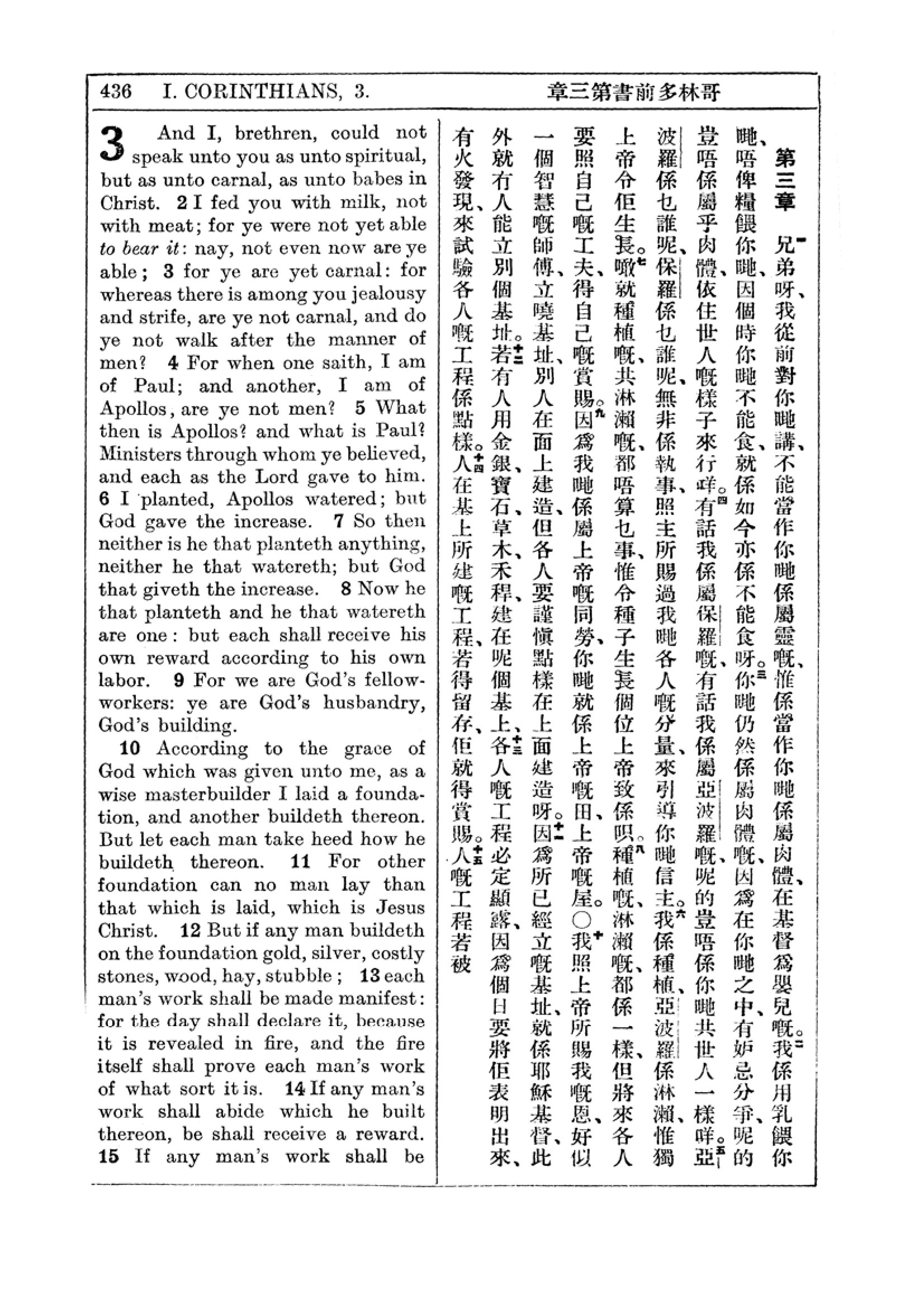 1927年新約全書(中英對照) 哥林多前書 3 章 1 節到 3 章 14 節