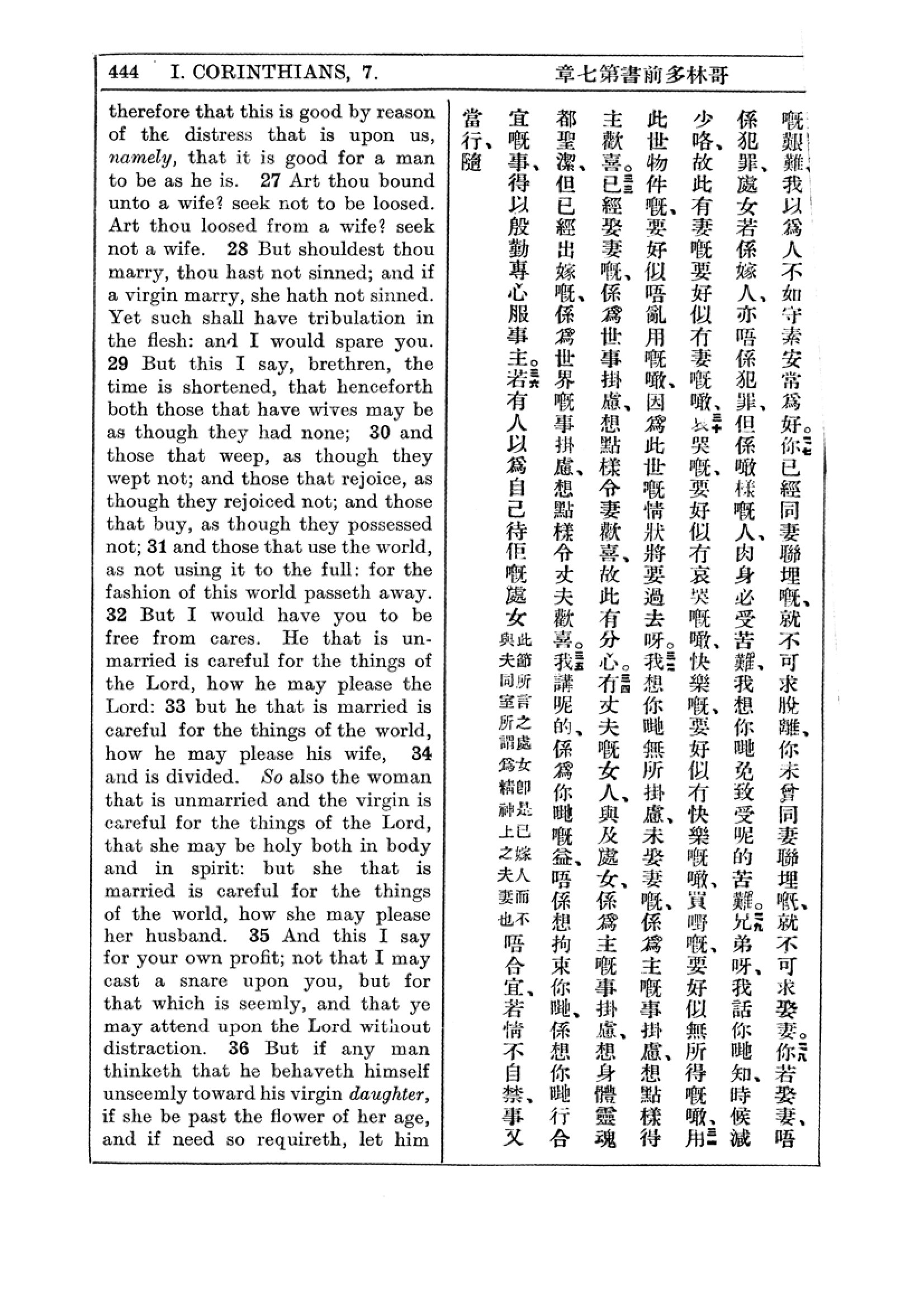 1927年新約全書(中英對照) 哥林多前書 7 章 26 節到 7 章 36 節
