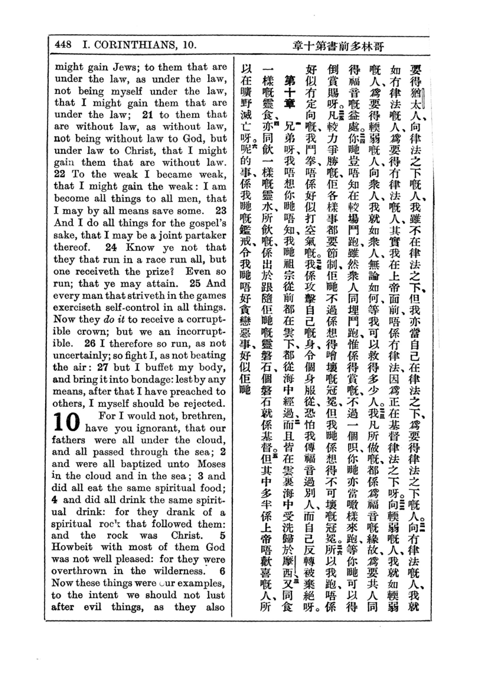 1927年新約全書(中英對照) 哥林多前書 9 章 21 節到 10 章 6 節