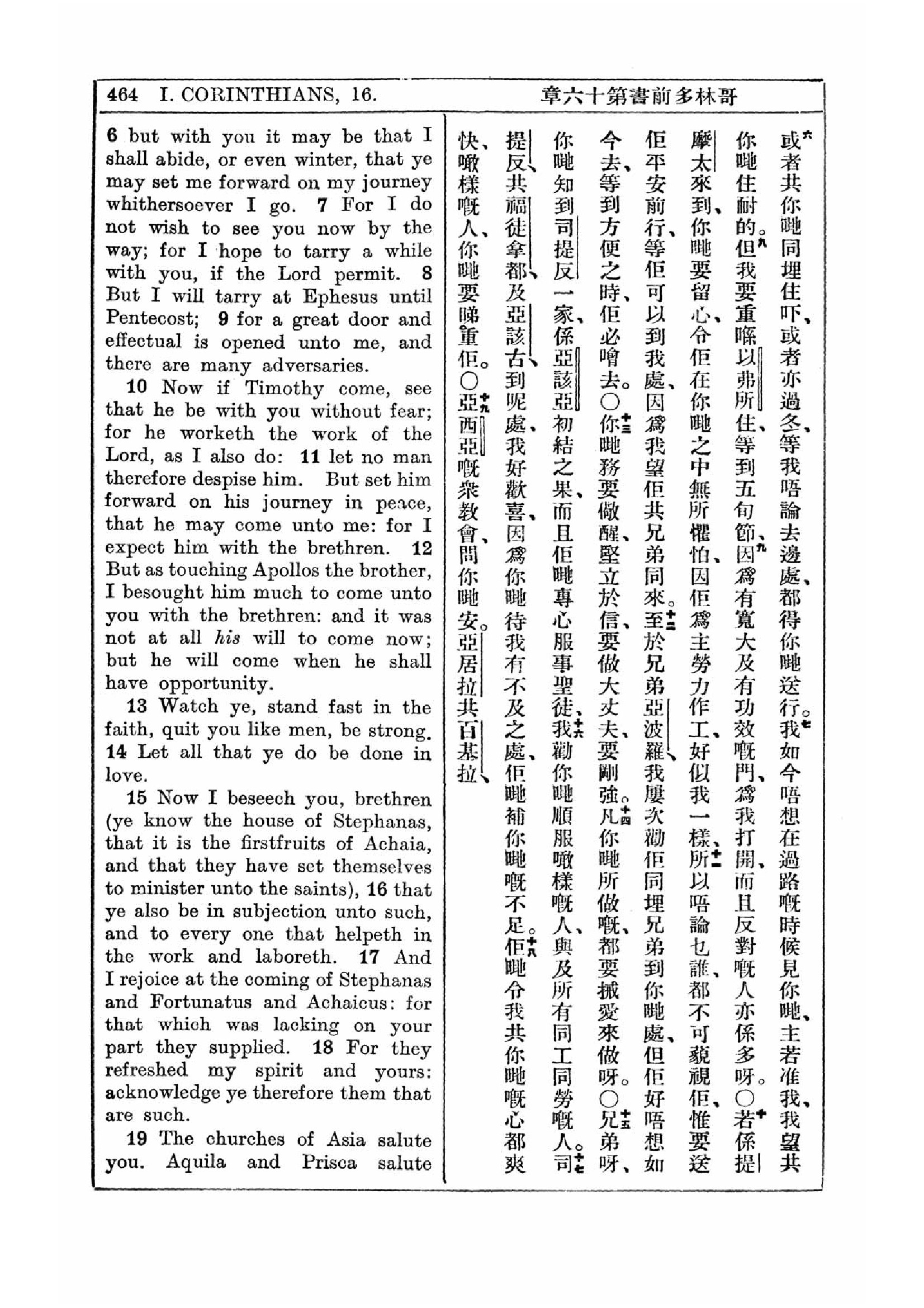1927年新約全書(中英對照) 哥林多前書 16 章 6 節到 16 章 19 節