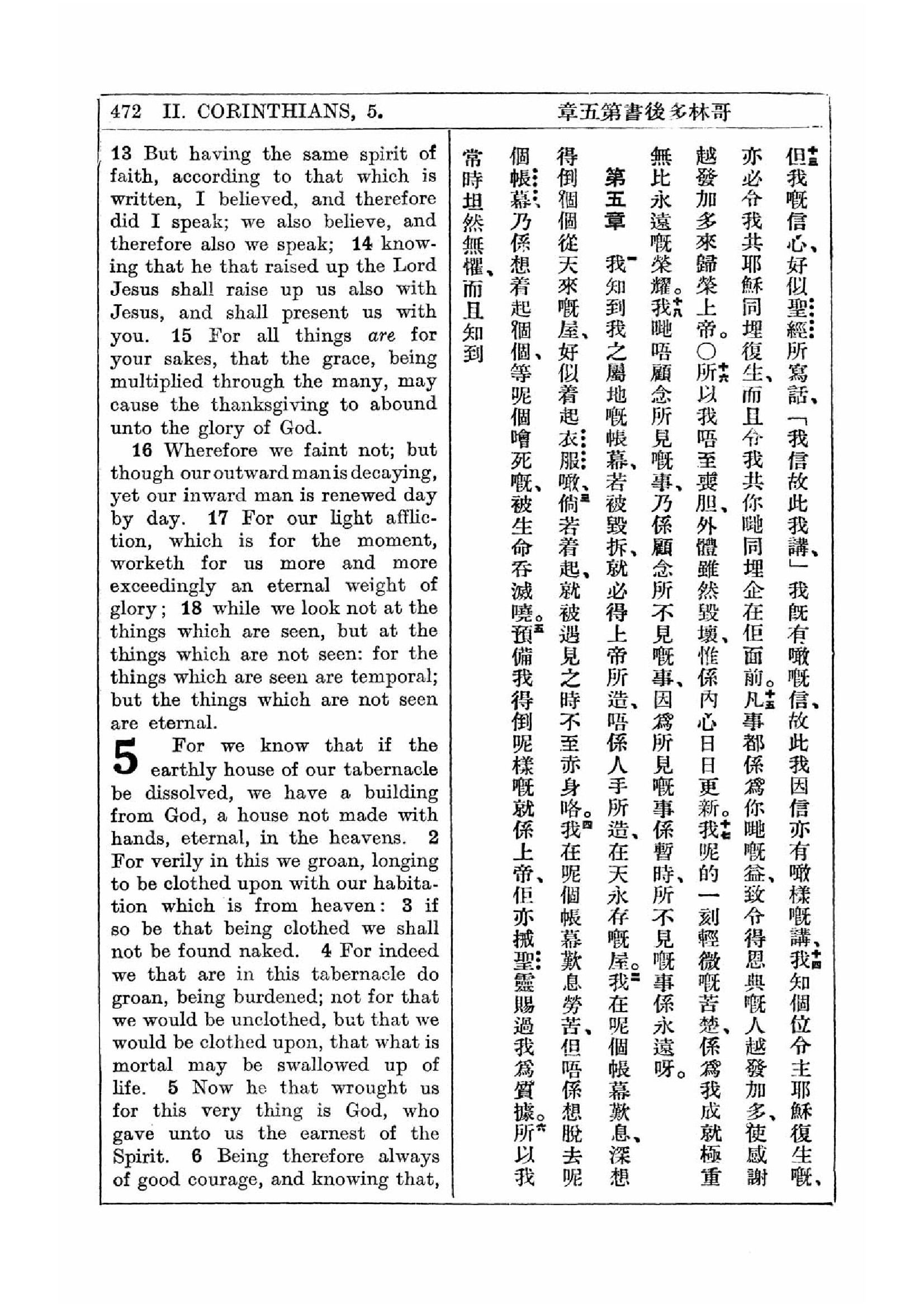 1927年新約全書(中英對照) 哥林多後書 4 章 13 節到 5 章 6 節
