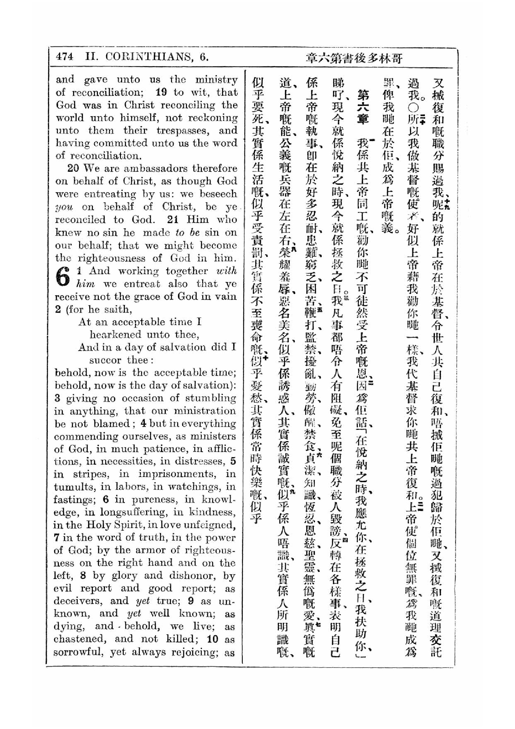 1927年新約全書(中英對照) 哥林多後書 5 章 19 節到 6 章 10 節