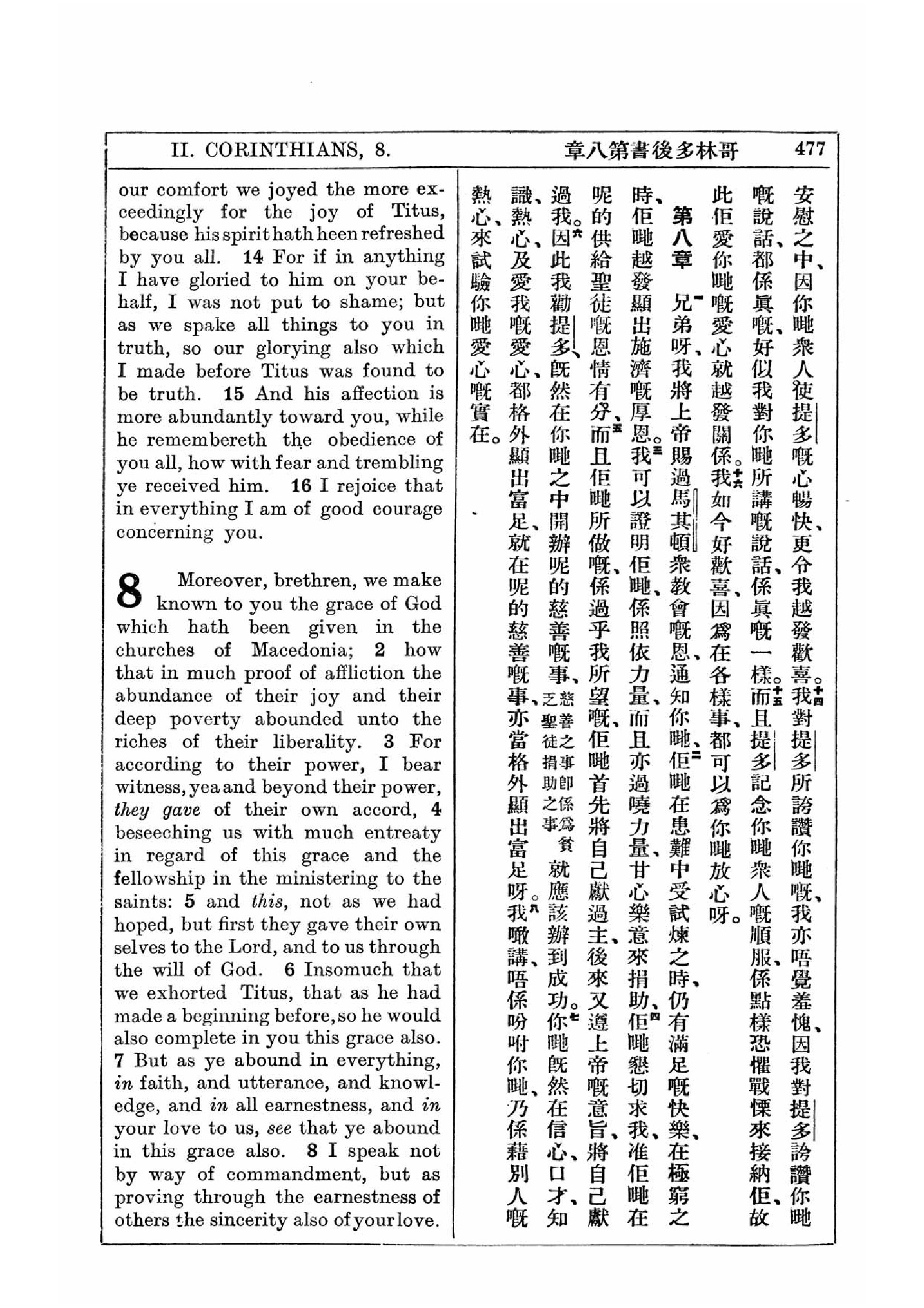 1927年新約全書(中英對照) 哥林多後書 7 章 14 節到 8 章 8 節