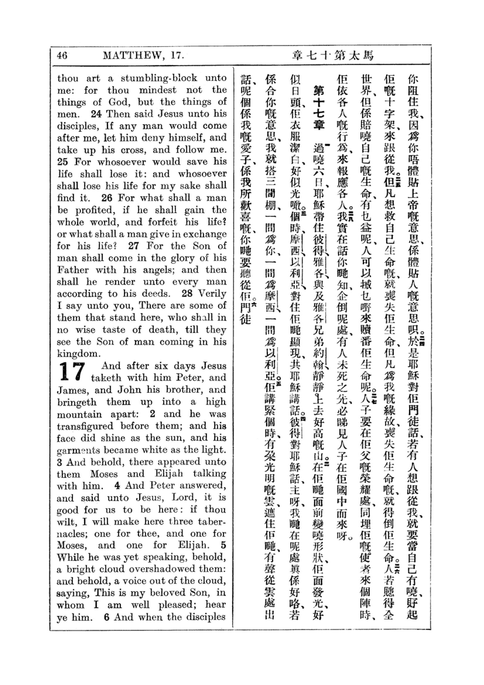 1927年新約全書(中英對照) 馬太福音 16 章 24 節到 17 章 6 節