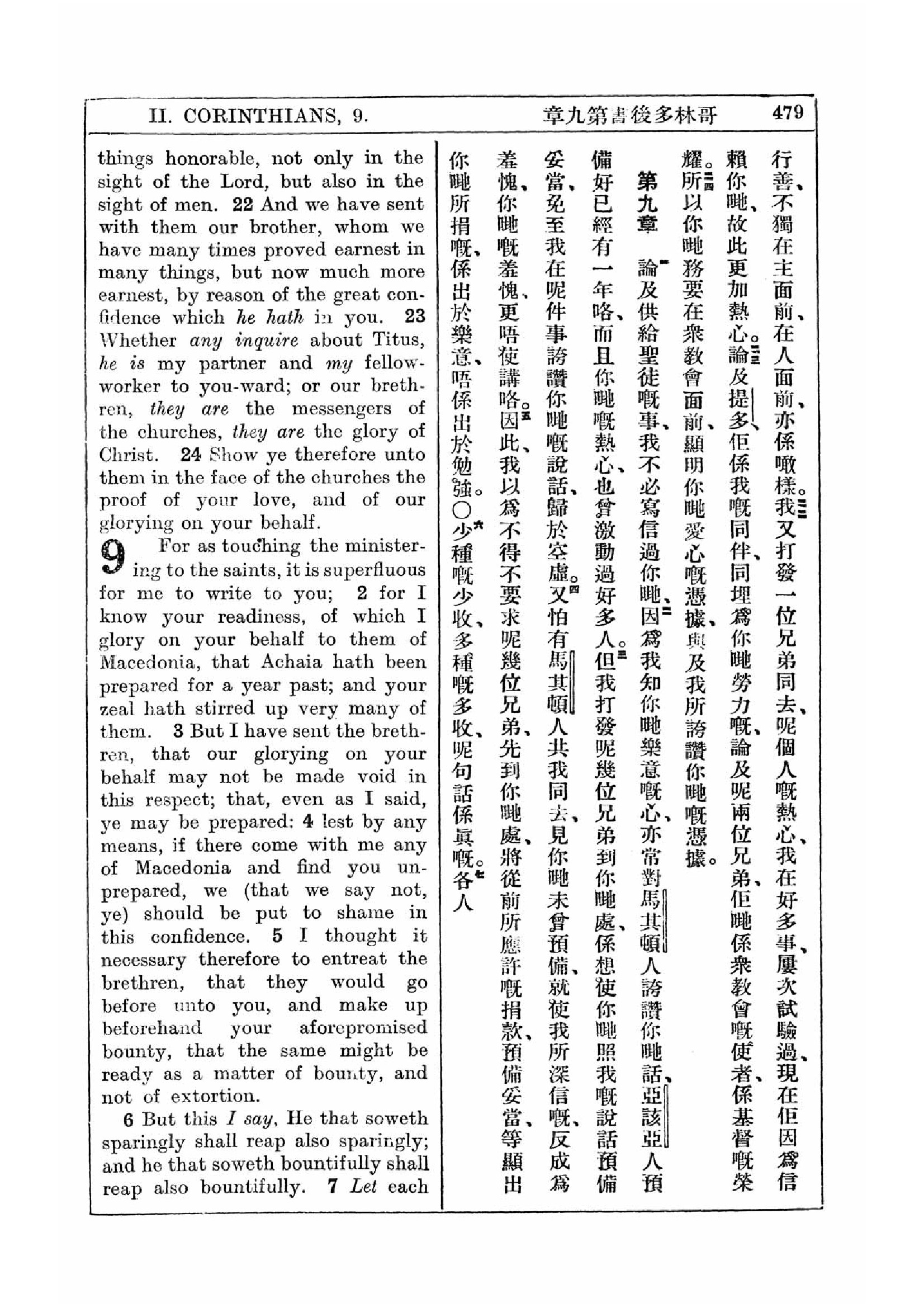 1927年新約全書(中英對照) 哥林多後書 8 章 22 節到 9 章 6 節