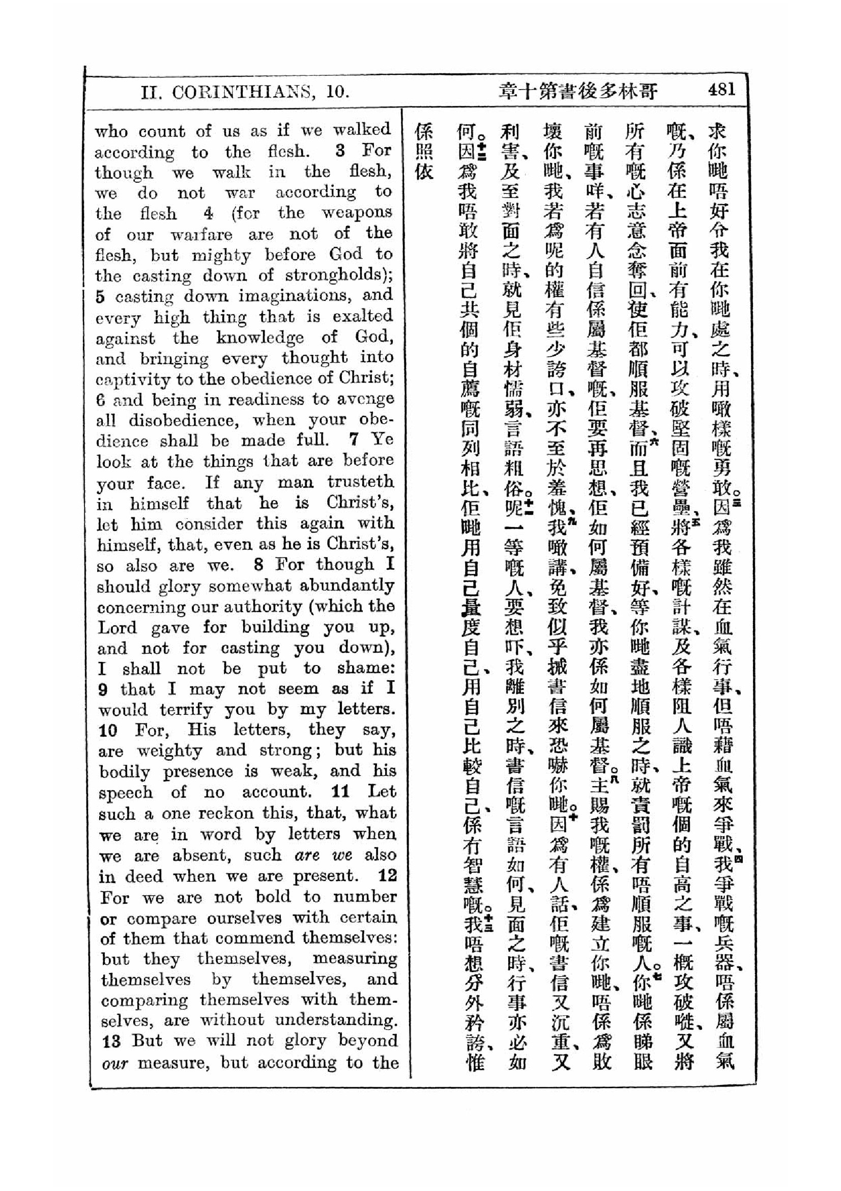 1927年新約全書(中英對照) 哥林多後書 10 章 3 節到 10 章 13 節