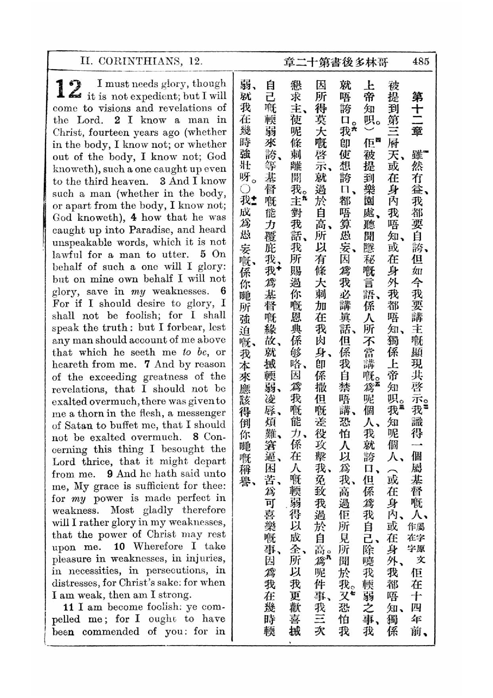 1927年新約全書(中英對照) 哥林多後書 12 章 1 節到 12 章 11 節