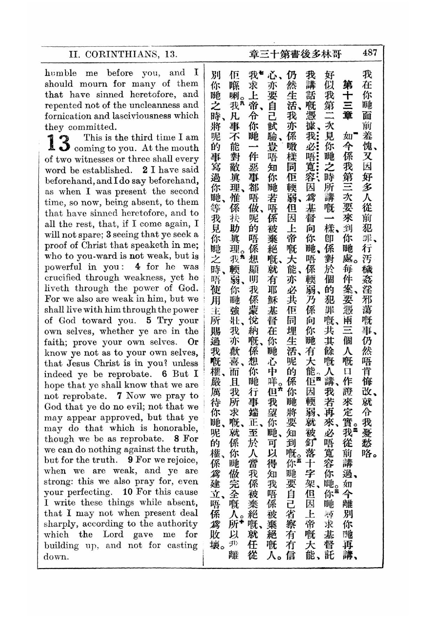 1927年新約全書(中英對照) 哥林多後書 13 章 1 節到 13 章 10 節