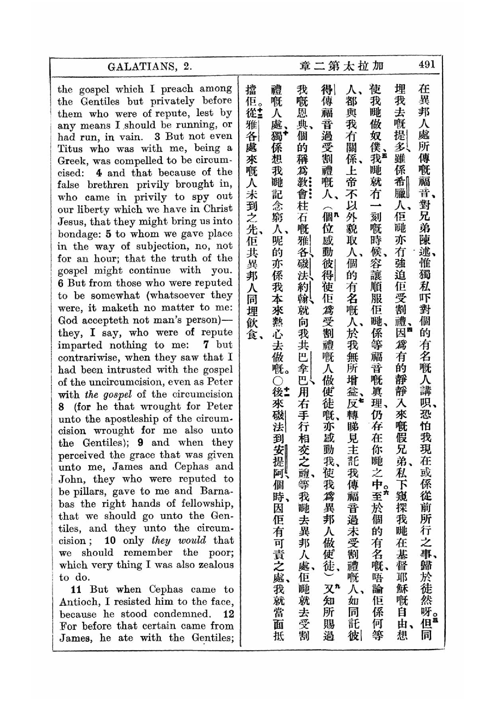 1927年新約全書(中英對照) 加拉太書 2 章 2 節到 2 章 12 節