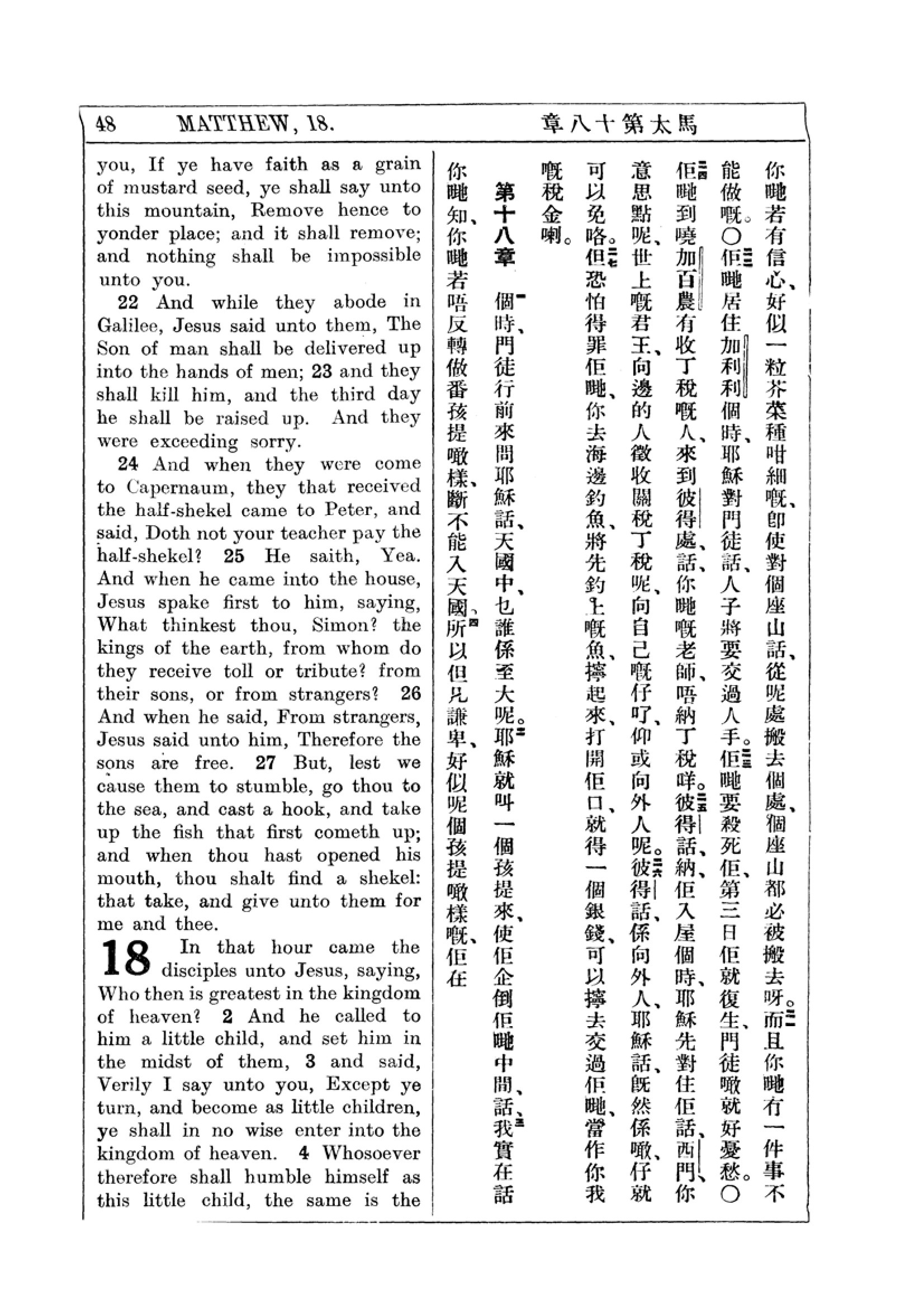 1927年新約全書(中英對照) 馬太福音 17 章 21 節到 18 章 4 節