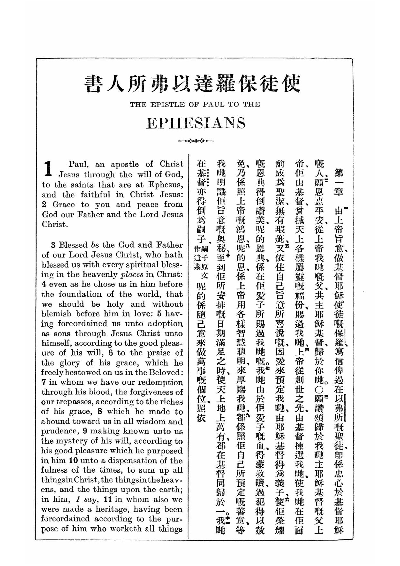 1927年新約全書(中英對照) 以弗所書 1 章 1 節到 1 章 11 節
