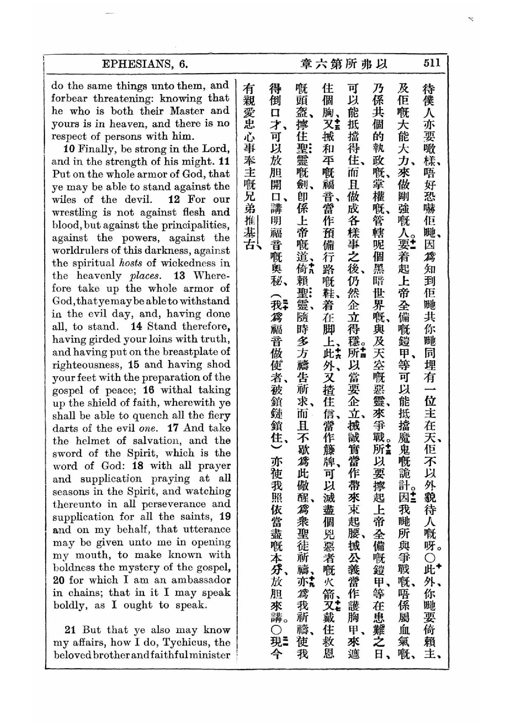 1927年新約全書(中英對照) 以弗所書 6 章 9 節到 6 章 21 節