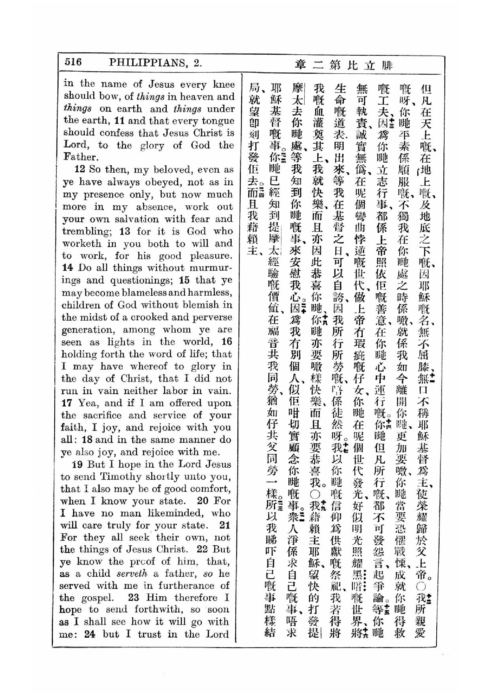 1927年新約全書(中英對照) 腓立比書 2 章 10 節到 2 章 24 節