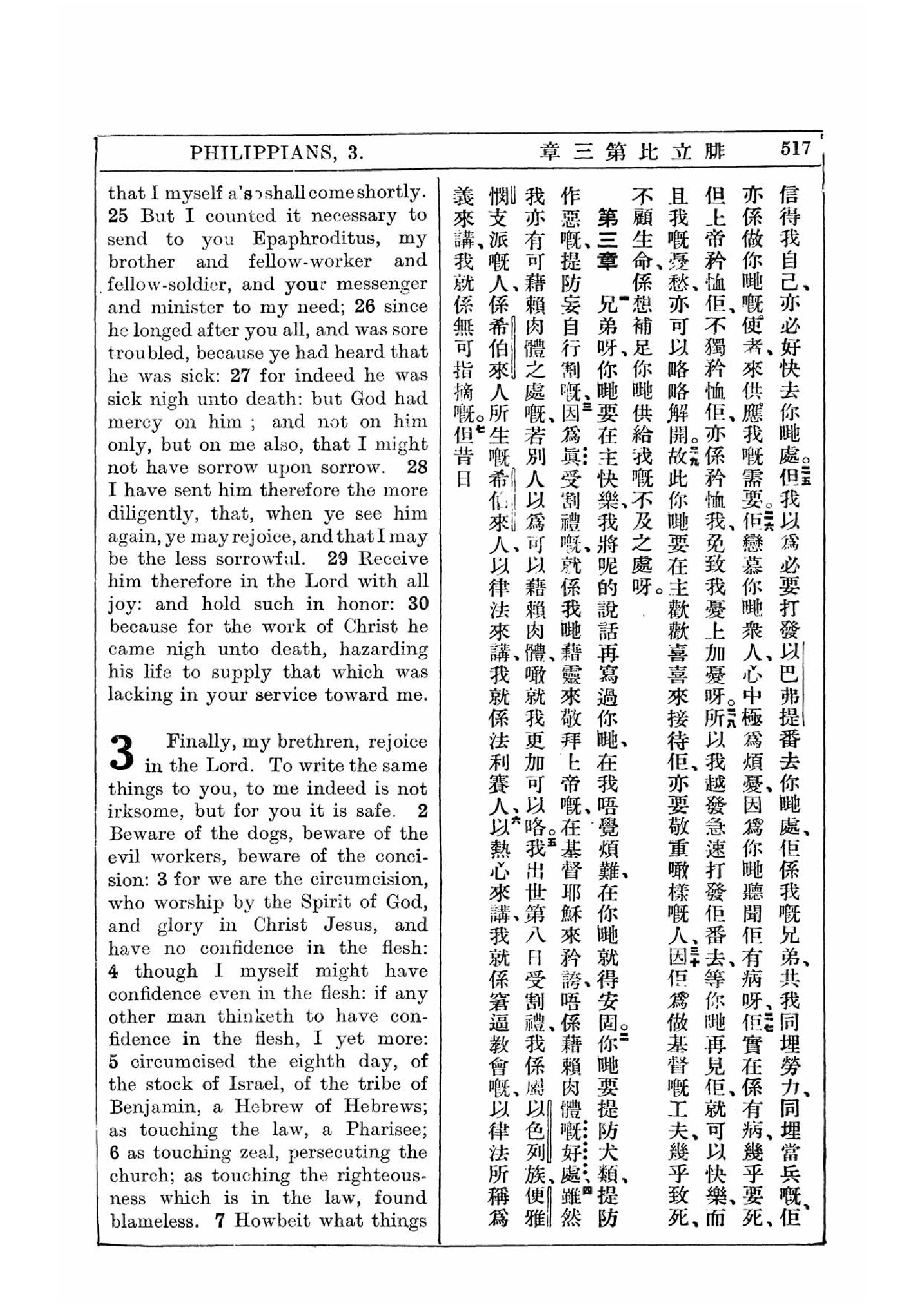 1927年新約全書(中英對照) 腓立比書 2 章 25 節到 3 章 7 節