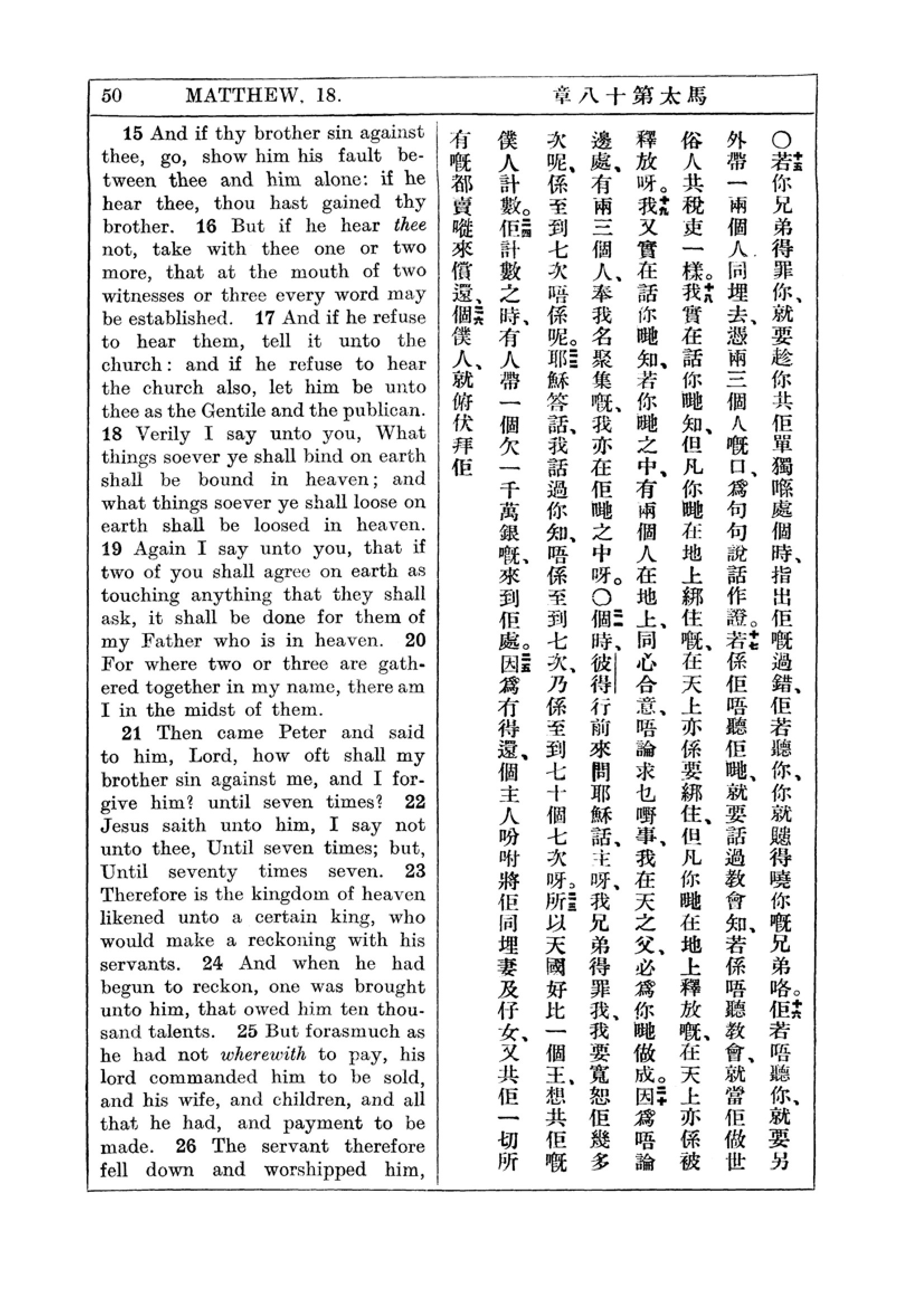 1927年新約全書(中英對照) 馬太福音 18 章 15 節到 18 章 26 節