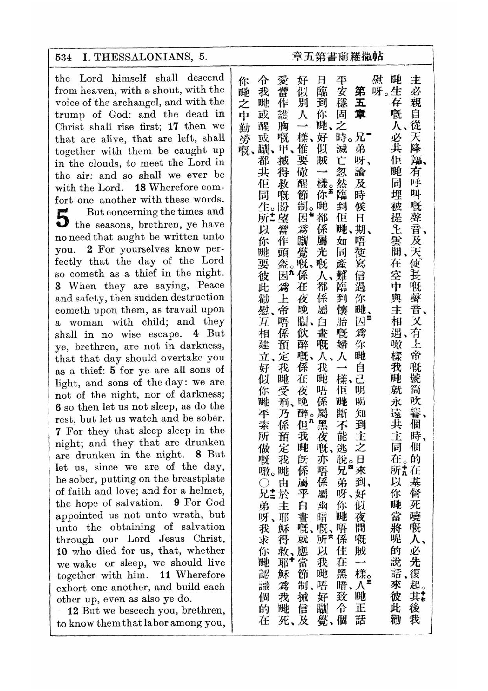 1927年新約全書(中英對照) 帖撒羅尼迦前書 4 章 16 節到 5 章 12 節