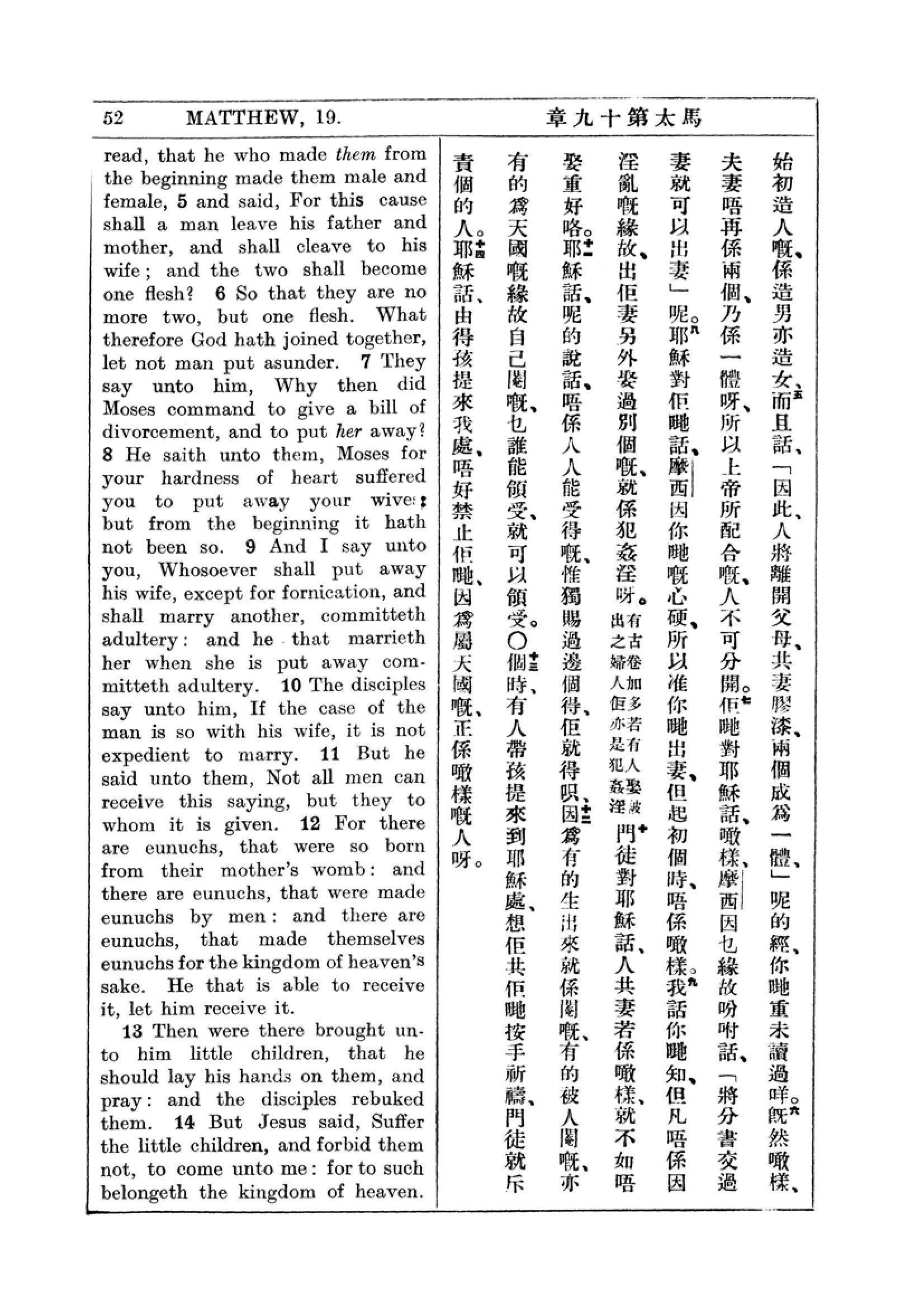 1927年新約全書(中英對照) 馬太福音 19 章 5 節到 19 章 14 節