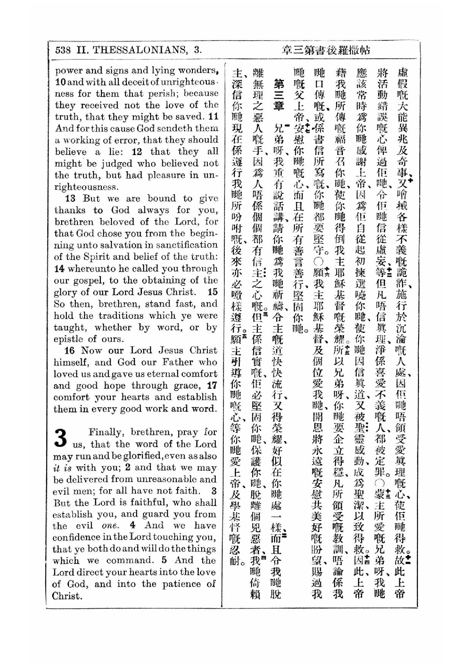 1927年新約全書(中英對照) 帖撒羅尼迦後書 2 章 10 節到 3 章 5 節
