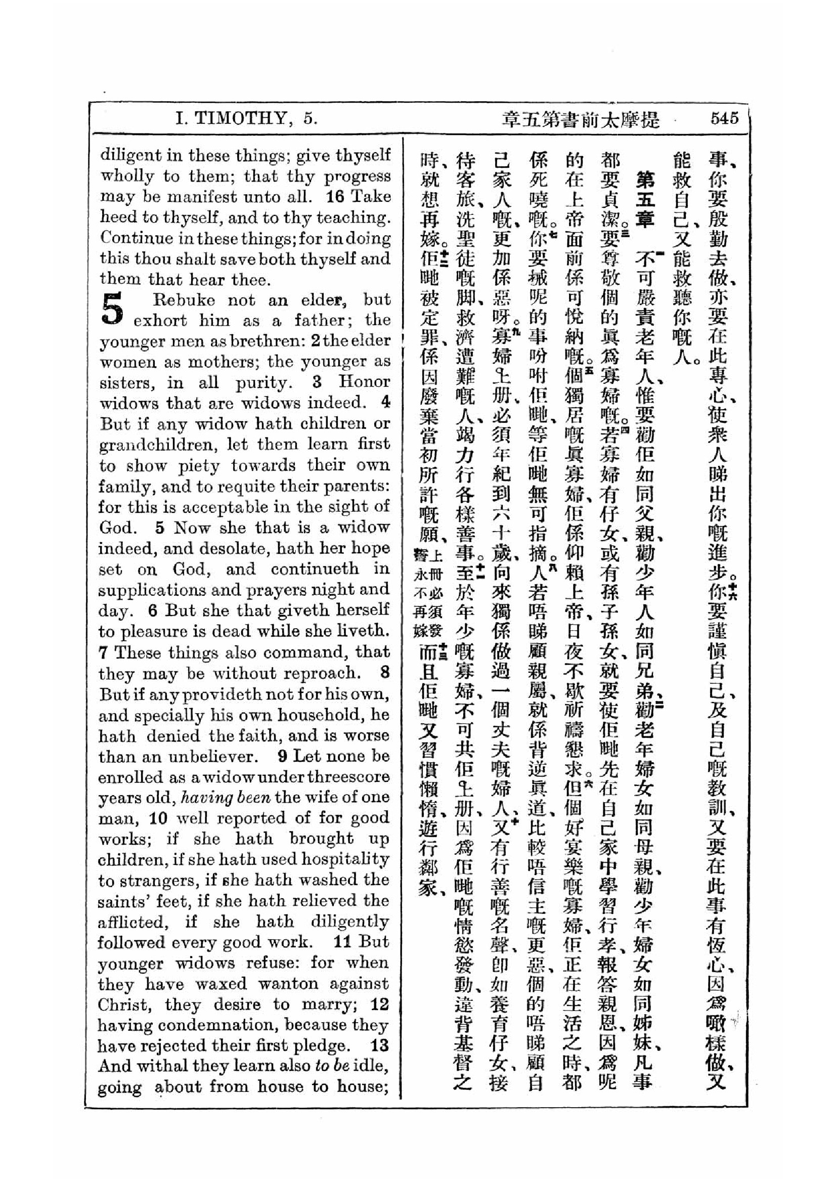 1927年新約全書(中英對照) 提摩太前書 4 章 15 節到 5 章 13 節