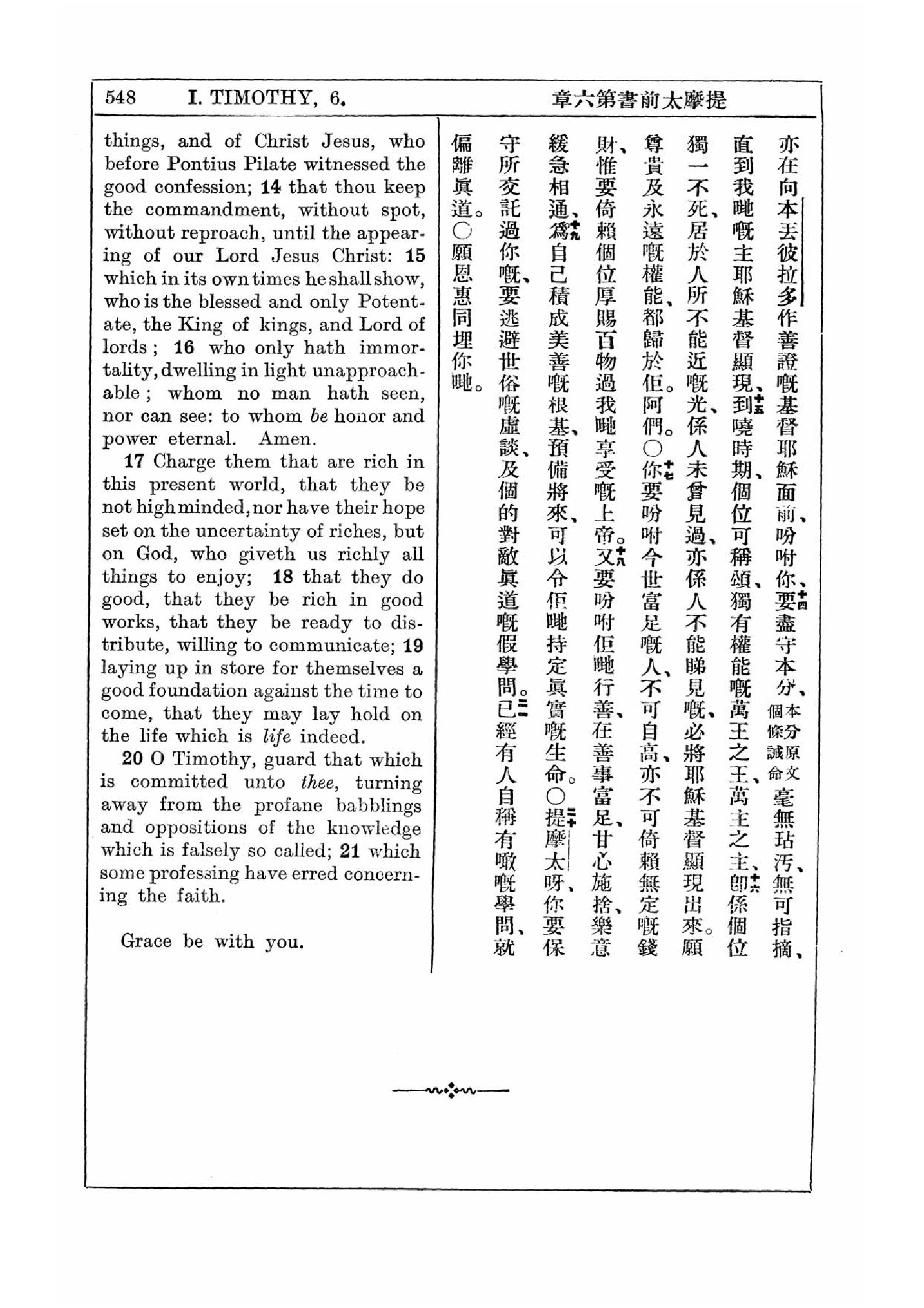 1927年新約全書(中英對照) 提摩太前書 6 章 14 節到 6 章 21 節