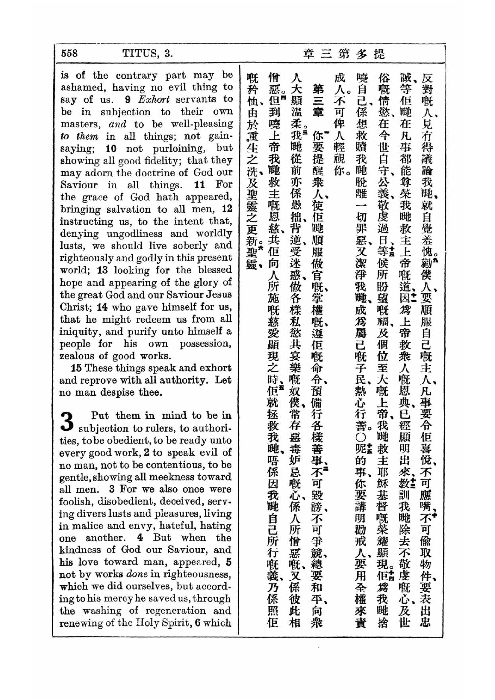 1927年新約全書(中英對照) 提多書 2 章 9 節到 3 章 5 節