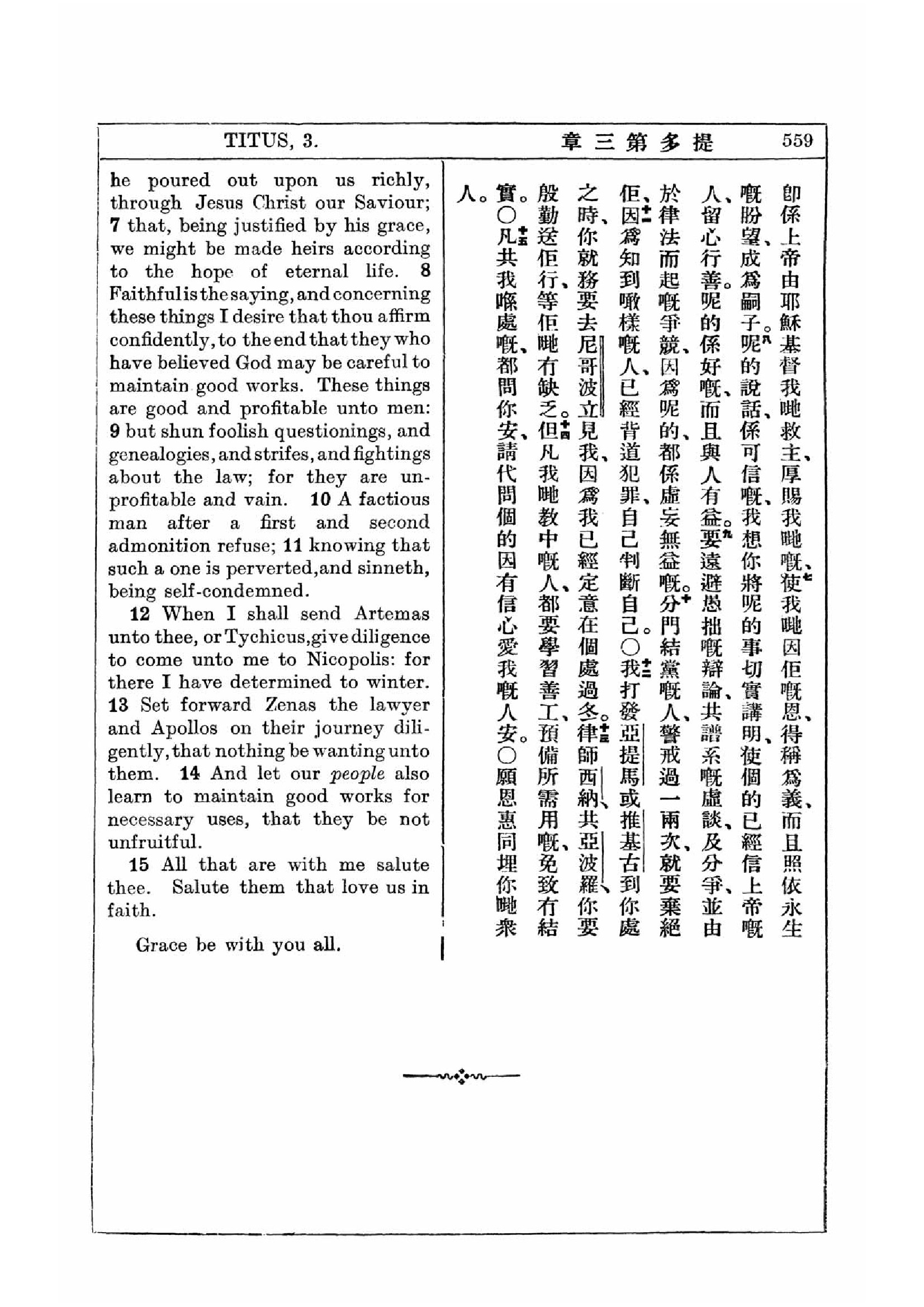 1927年新約全書(中英對照) 提多書 3 章 6 節到 3 章 15 節