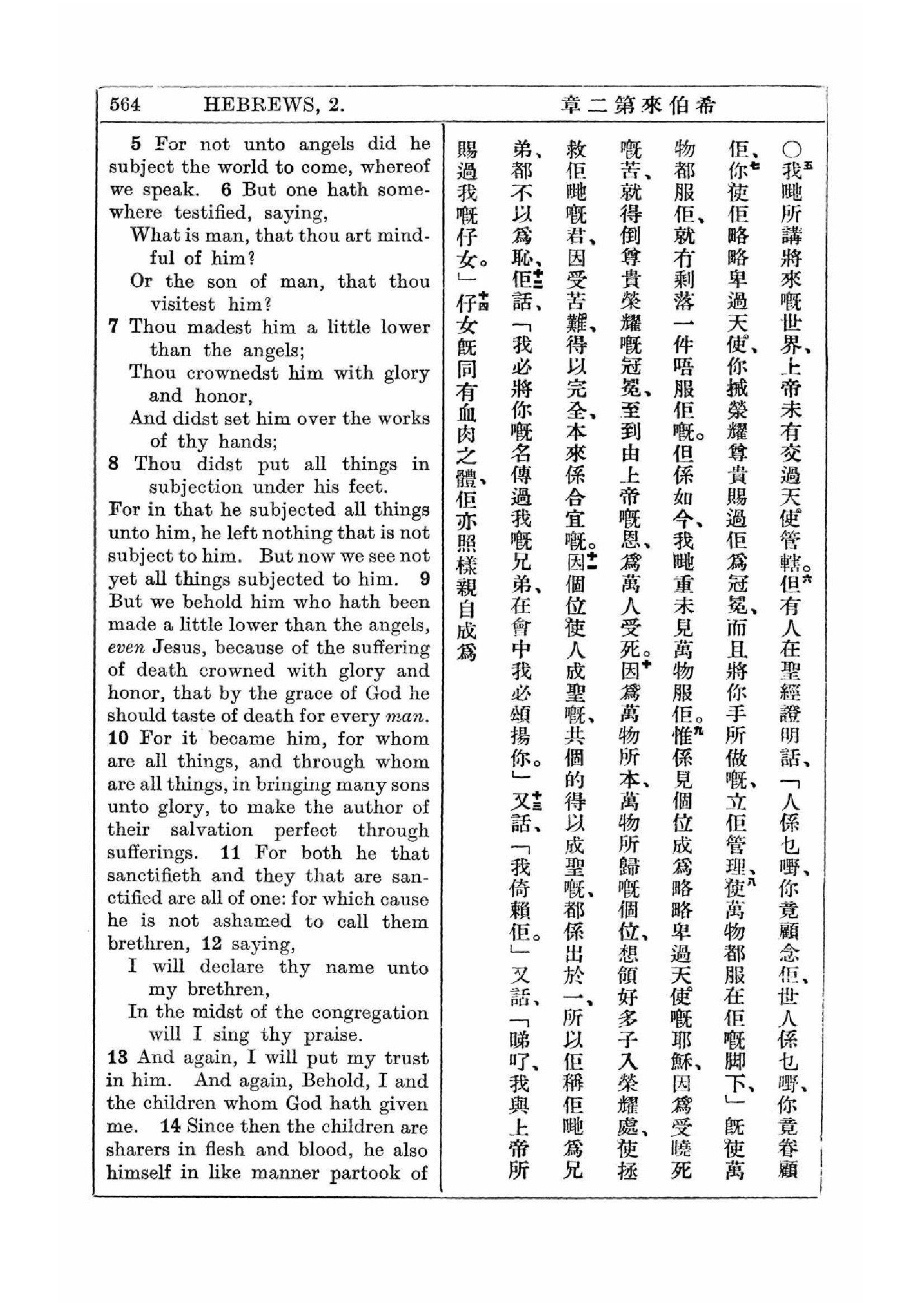 1927年新約全書(中英對照) 希伯來書 2 章 5 節到 2 章 14 節