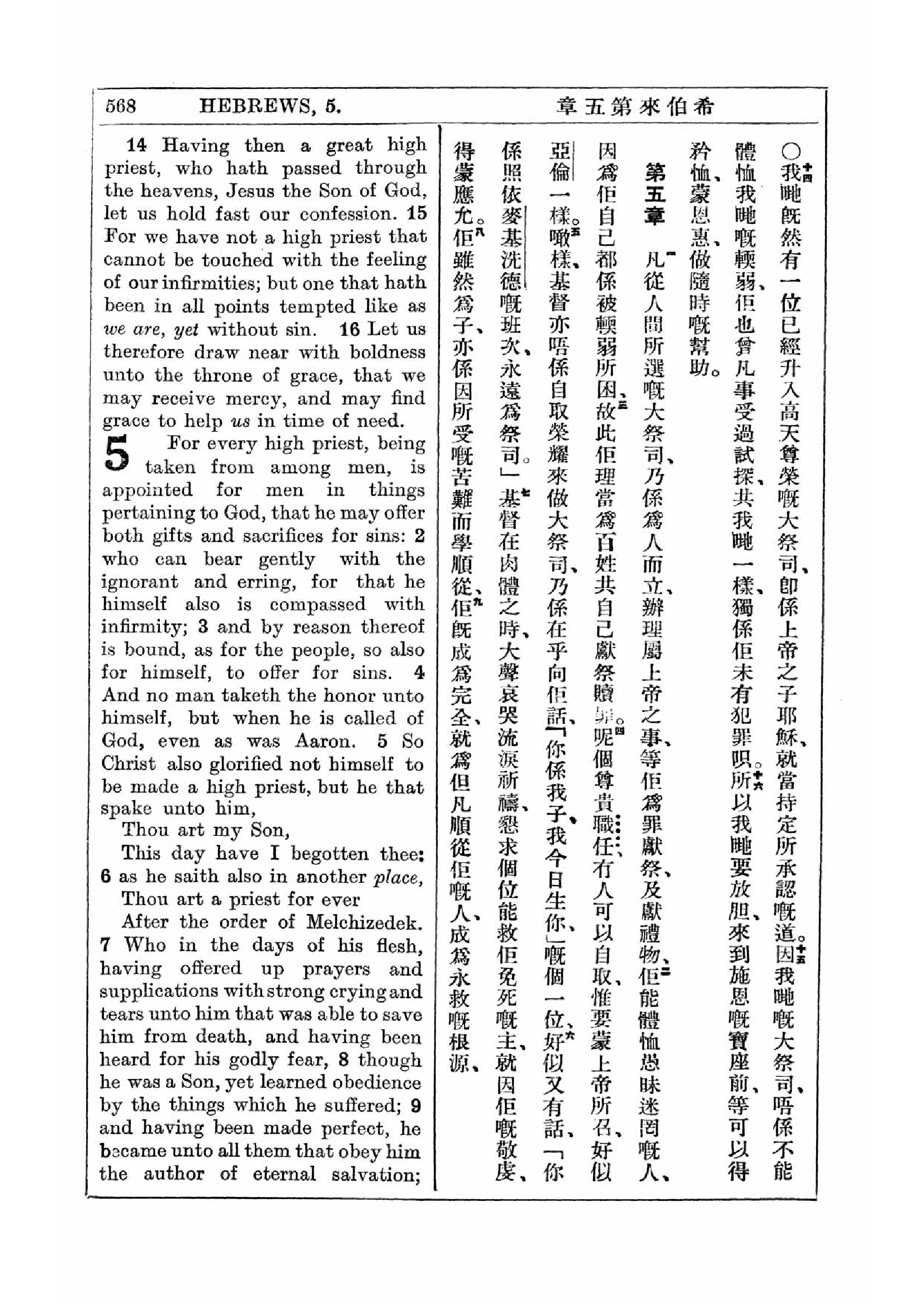 1927年新約全書(中英對照) 希伯來書 4 章 14 節到 5 章 9 節