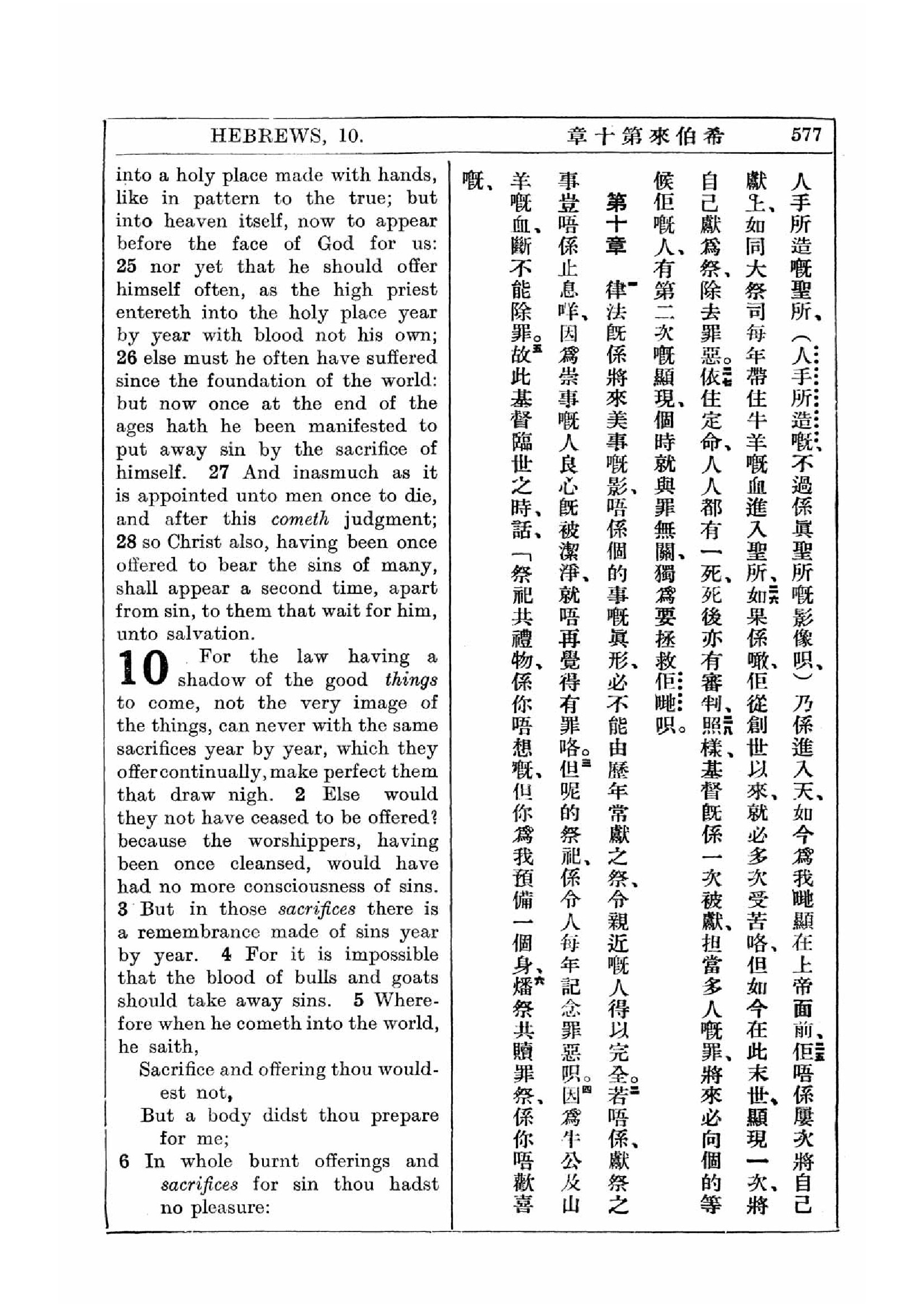 1927年新約全書(中英對照) 希伯來書 9 章 24 節到 10 章 6 節