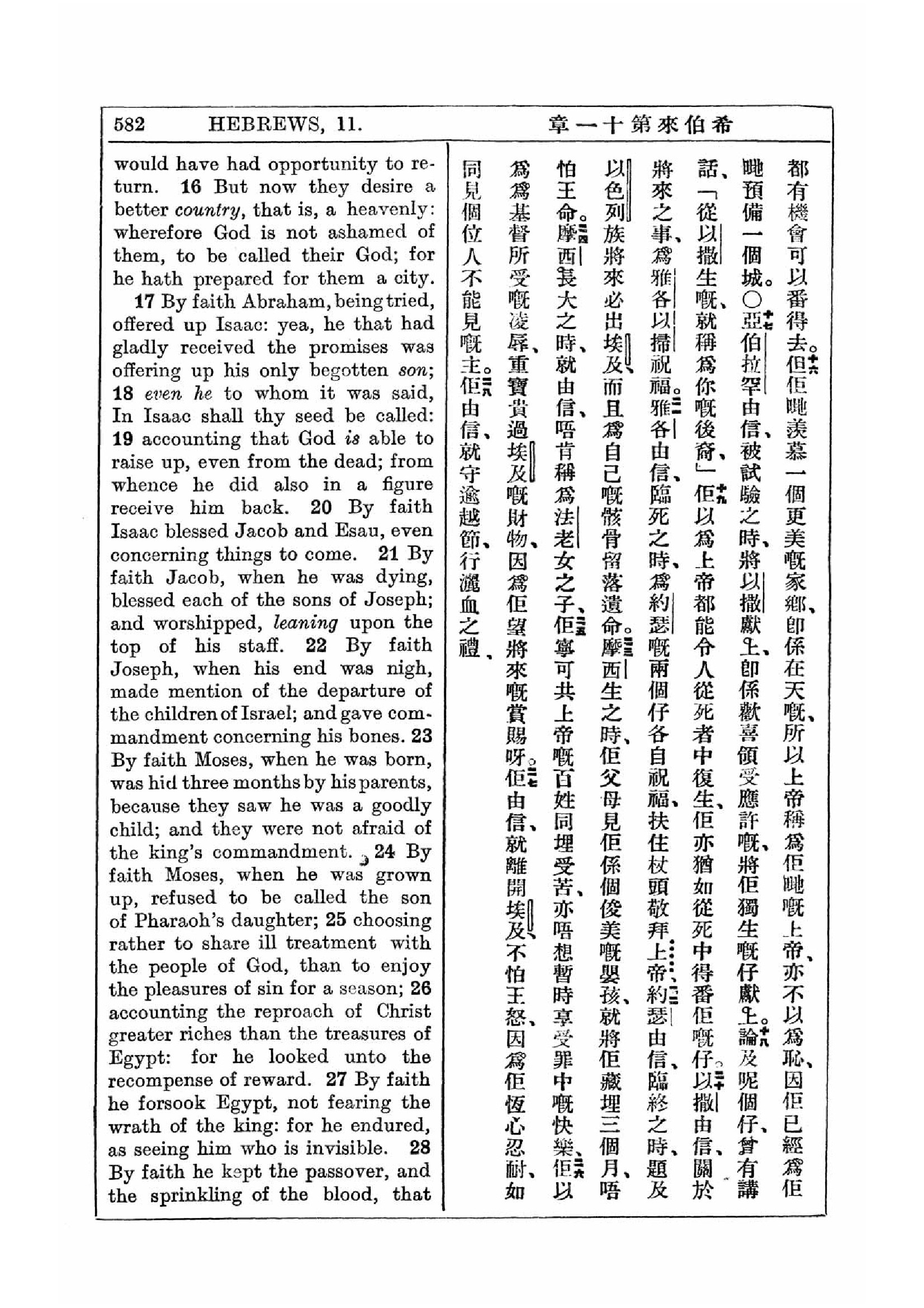 1927年新約全書(中英對照) 希伯來書 11 章 16 節到 11 章 28 節