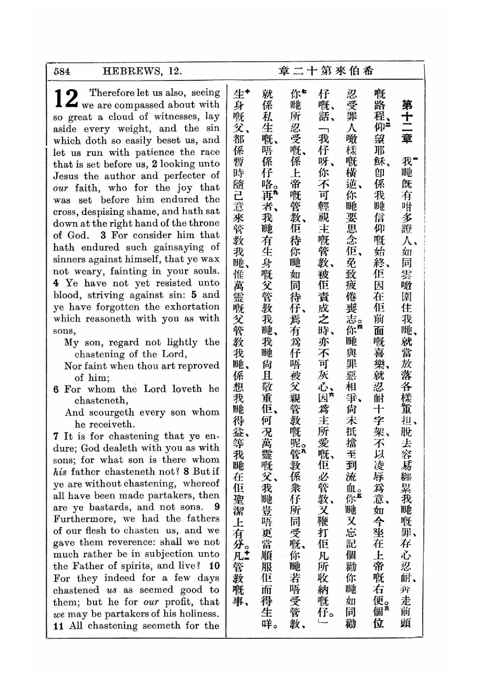 1927年新約全書(中英對照) 希伯來書 12 章 1 節到 12 章 10 節