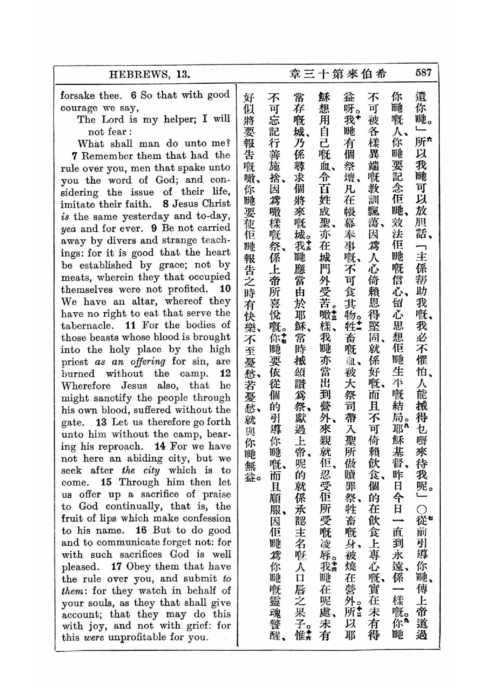 1927年新約全書(中英對照) 希伯來書 13 章 6 節到 13 章 17 節