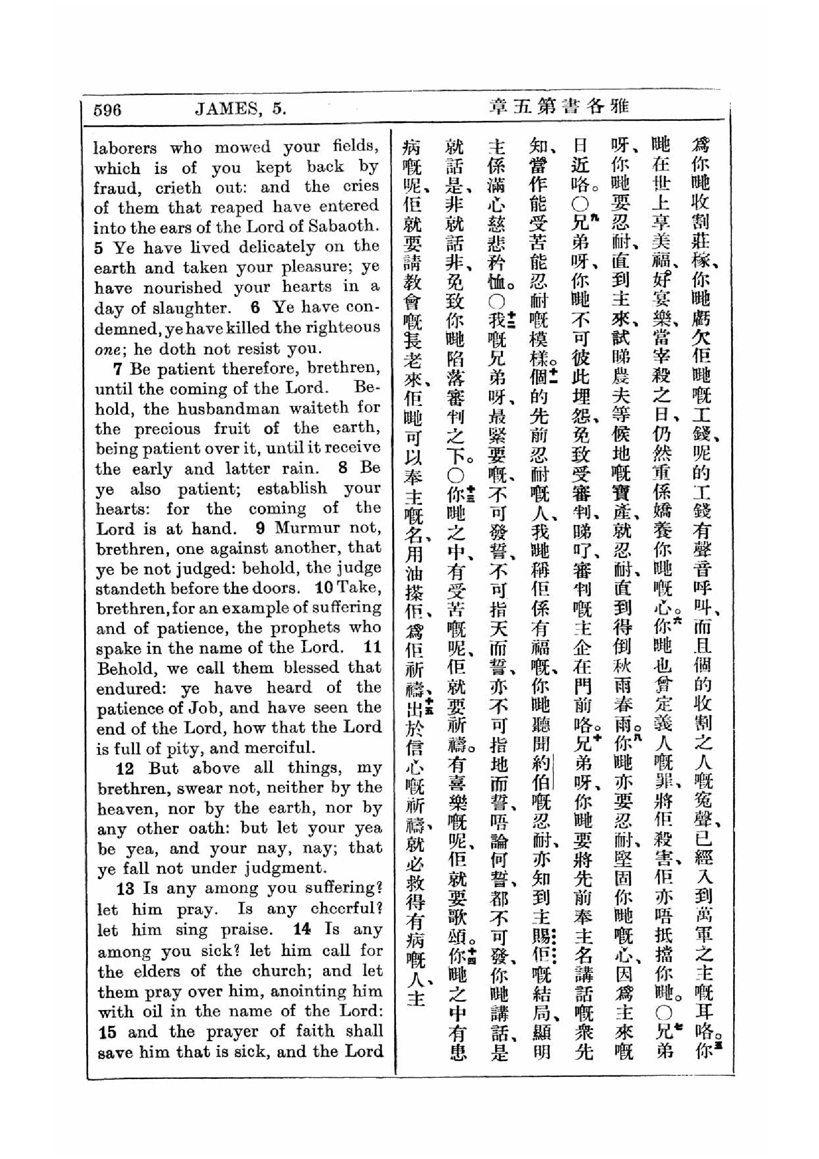 1927年新約全書(中英對照) 雅各書 5 章 4 節到 5 章 15 節