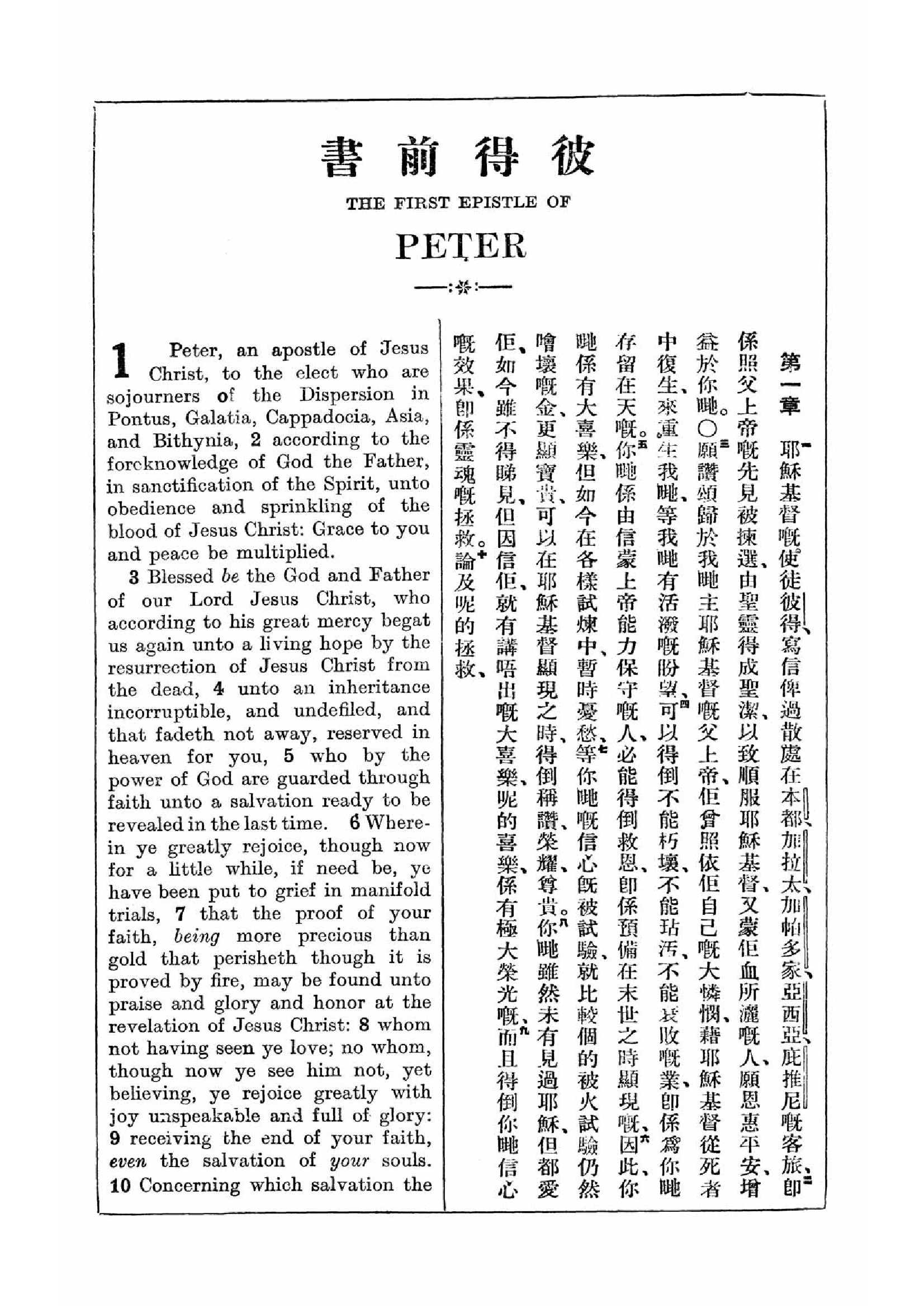 1927年新約全書(中英對照) 彼得前書 1 章 1 節到 1 章 10 節