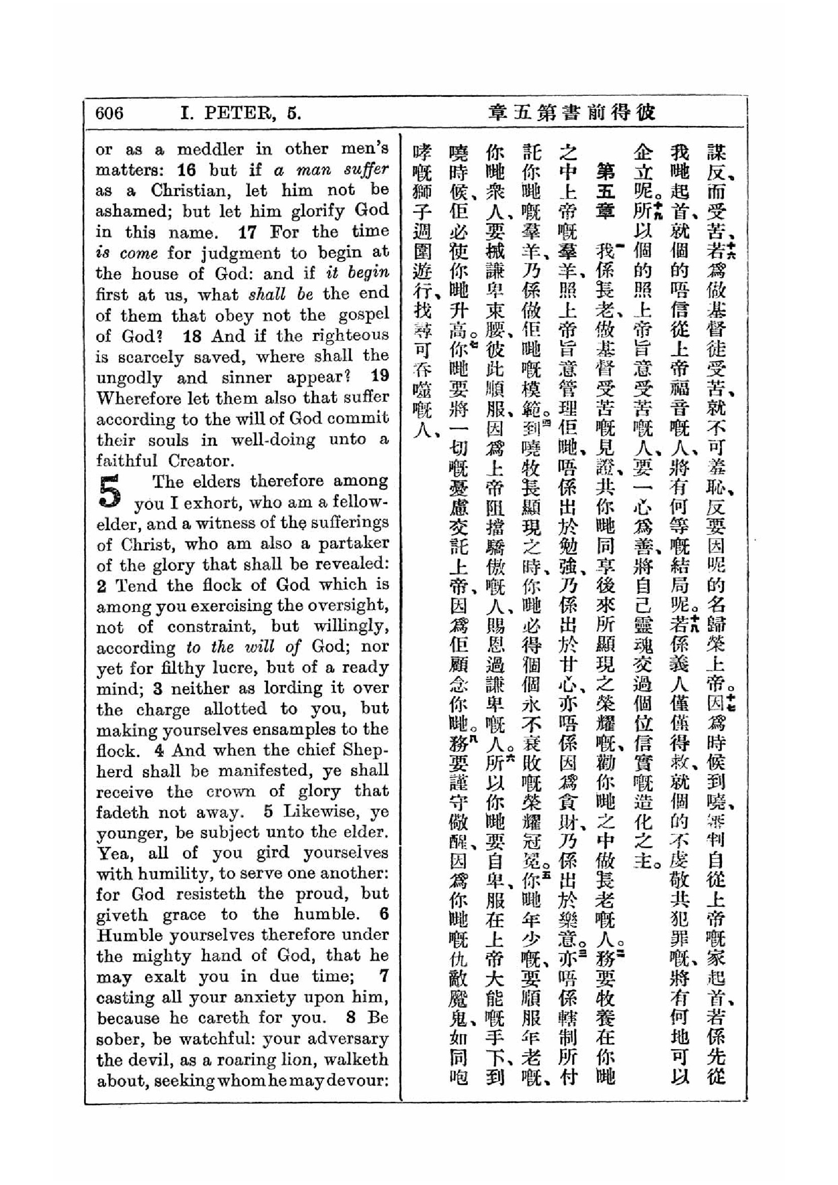 1927年新約全書(中英對照) 彼得前書 4 章 16 節到 5 章 8 節